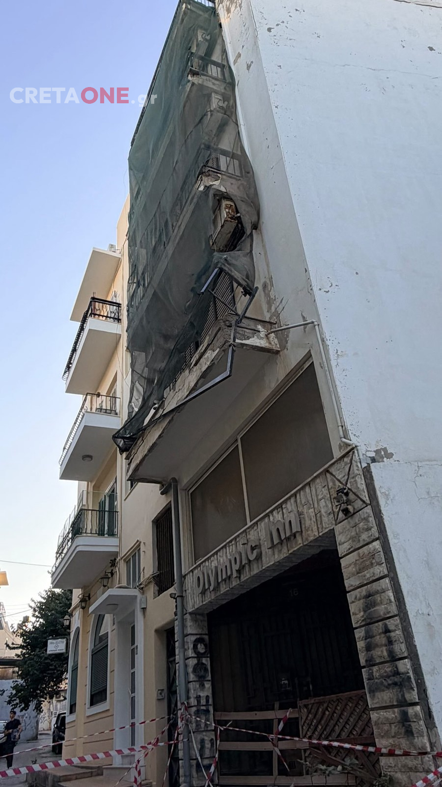 Σοβαρή εικόνα εγκατάλειψης παρουσιάζει κτίριο στο κέντρο του Ηρακλείου, με μπαλκόνια να έχουν καταρρεύσει μερικώς και κομμάτια μπετόν να είναι έτοιμα να πέσουν στον δρόμο.