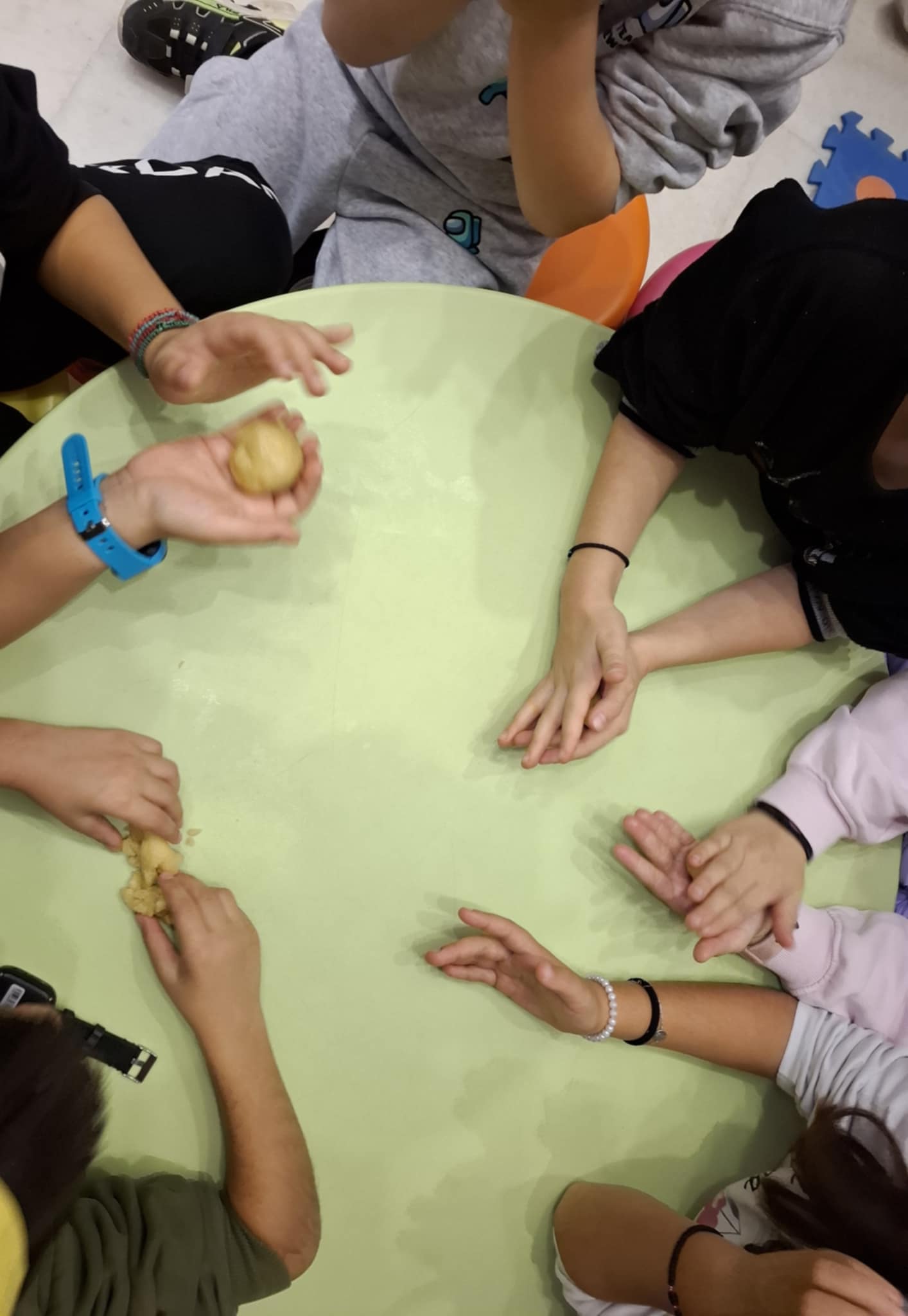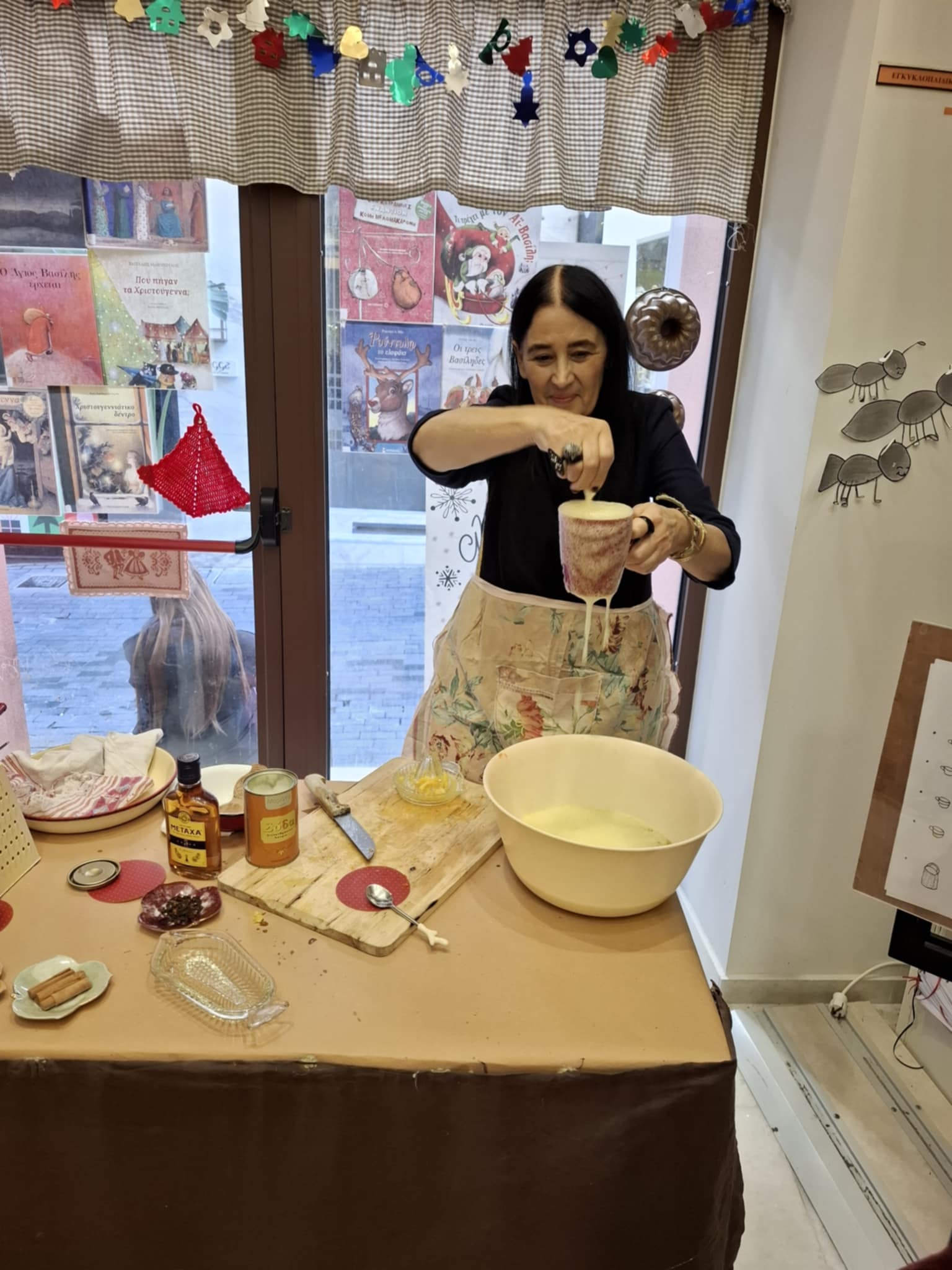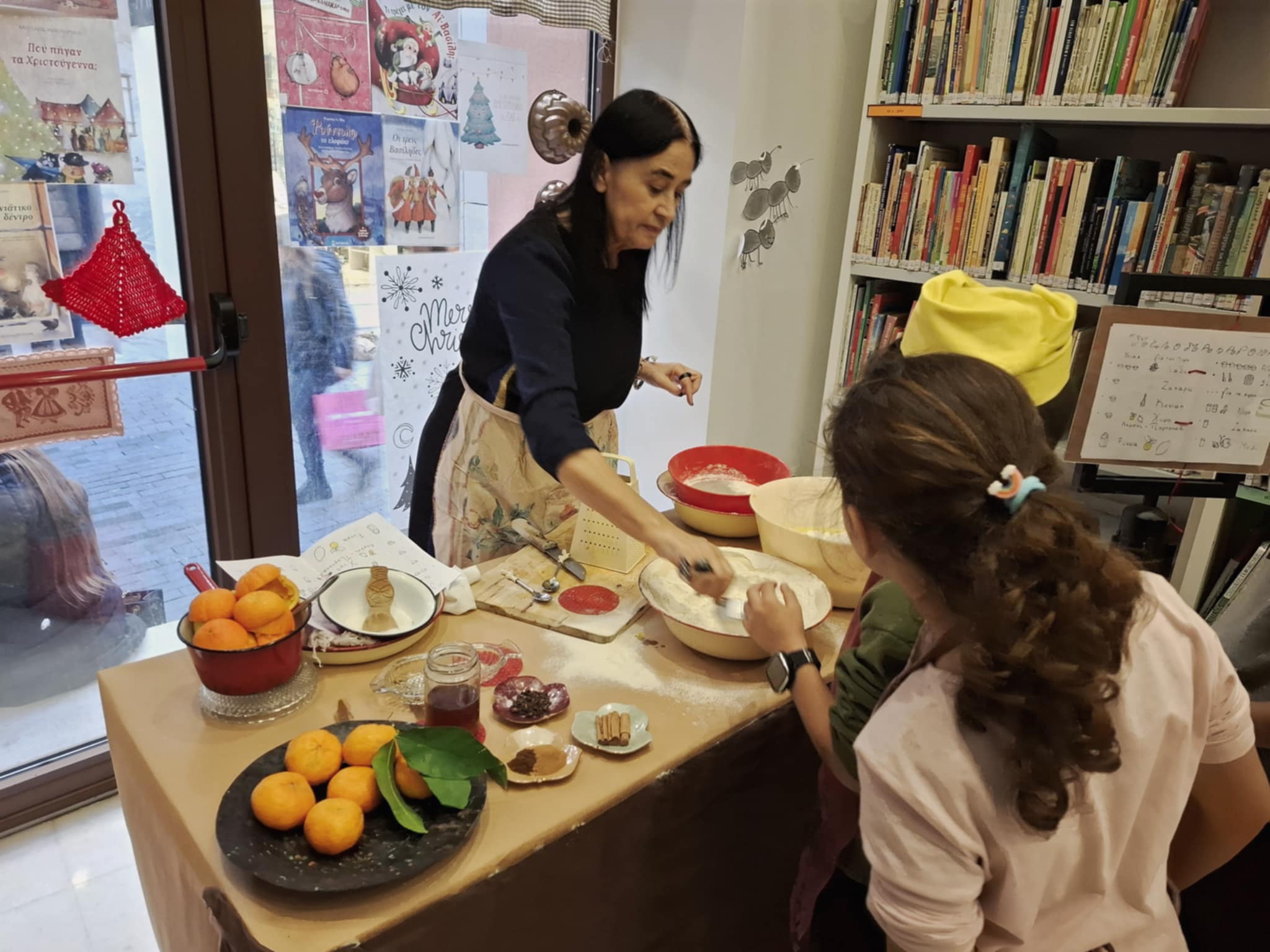 Στη συνέχεια, ακολούθησε το βιωματικό εργαστήριο «Όταν μελώσει το μελομακάρονο» από την πολιτισμολόγο Δέσποινα Μαθιουδάκη η οποία αναπολώντας τα παιδικά της χρόνια, ανακάτεψε με τα παιδιά ζάχαρη και κανέλα, μοσχοκάρφια και αρώματα εσπεριδοειδών και έπλασαν μελομακάρονα. Προσοχή όμως, τα μισά παιδιά φρουρούσαν για να μην έρθουν οι καλικάντζαροι. Στόχος της συγκεκριμένης δράσης, μέσα από την παρουσίαση του παραδοσιακού Χριστουγεννιάτικου εθίμου, ήταν η μετάδοση υγιεινών διατροφικών συνηθειών σε παιδιά μικρής ηλικίας. Τα παιδιά μεταφέρθηκαν νοερά σε παλαιότερες εποχές και, μέσα από το παιχνίδι, τη βιωματική εκτέλεση, καθώς και την εικονογραφημένη και σχηματοποιημένη παρουσίαση της συνταγής, διδάχθηκαν και κατανόησαν διατροφικές αλλά και λαογραφικές αξίες.