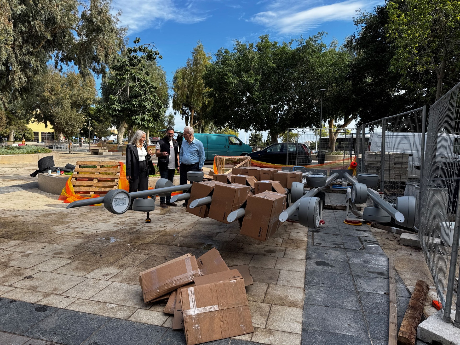 Η τοποθέτηση των οκτώ νέων φωτιστικών (δυο στην πλατεία Νίκου Καζαντζάκη και έξι στην πλατεία Ελευθερίας) θα ολοκληρωθεί άμεσα, πιθανότατα εντός της ημέρας, ενώ προχωράει και η τοποθέτηση των επιγεμιζόμενων σχαρών περιμετρικά των δένδρων της πλατείας.