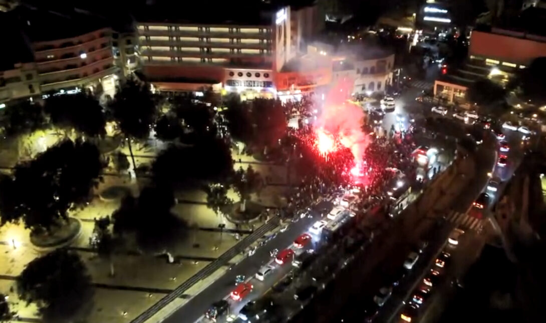 - Η γιορτινή ατμόσφαιρα ενισχύθηκε από κόρνες, καπνογόνα και αυθόρμητους χορούς.