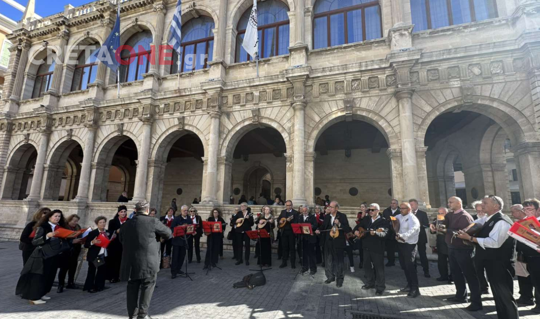 Με γιορτινές μελωδίες και χριστουγεννιάτικα κάλαντα πλημμύρισε σήμερα, Παραμονή Χριστουγέννων, το κέντρο και οι εμπορικοί του Ηρακλείου.