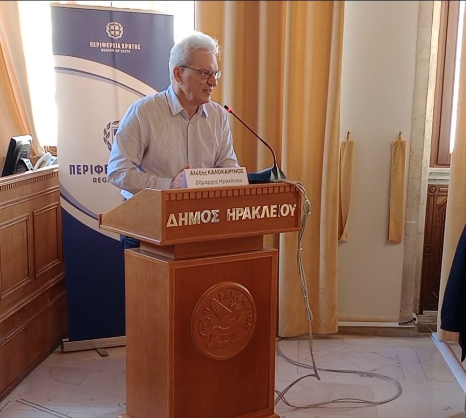 Στην προσομοίωση συνεδρίασης της Ολομέλειας του Ευρωπαϊκού Κοινοβουλίου που πραγματοποιήθηκε στην αίθουσα του Δημοτικού Συμβουλίου στη Λότζια, με τη συμμετοχή 50 μαθητών και μαθητριών της Α΄ και Β΄ Λυκείου από σχολεία της Κρήτης, παραβρέθηκε και απηύθυνε χαιρετισμό ο Δήμαρχος Ηρακλείου Αλέξης Καλοκαιρινός.