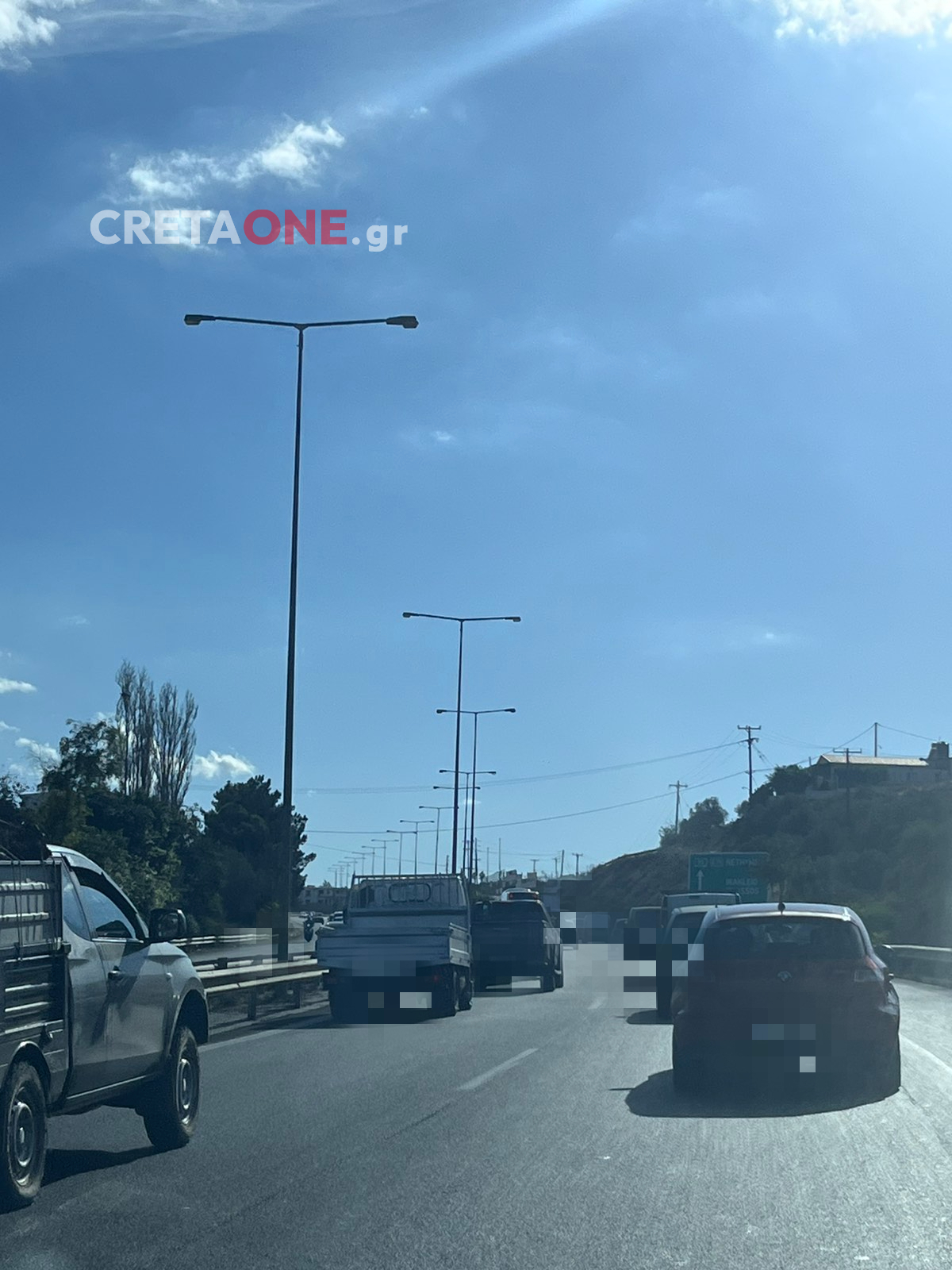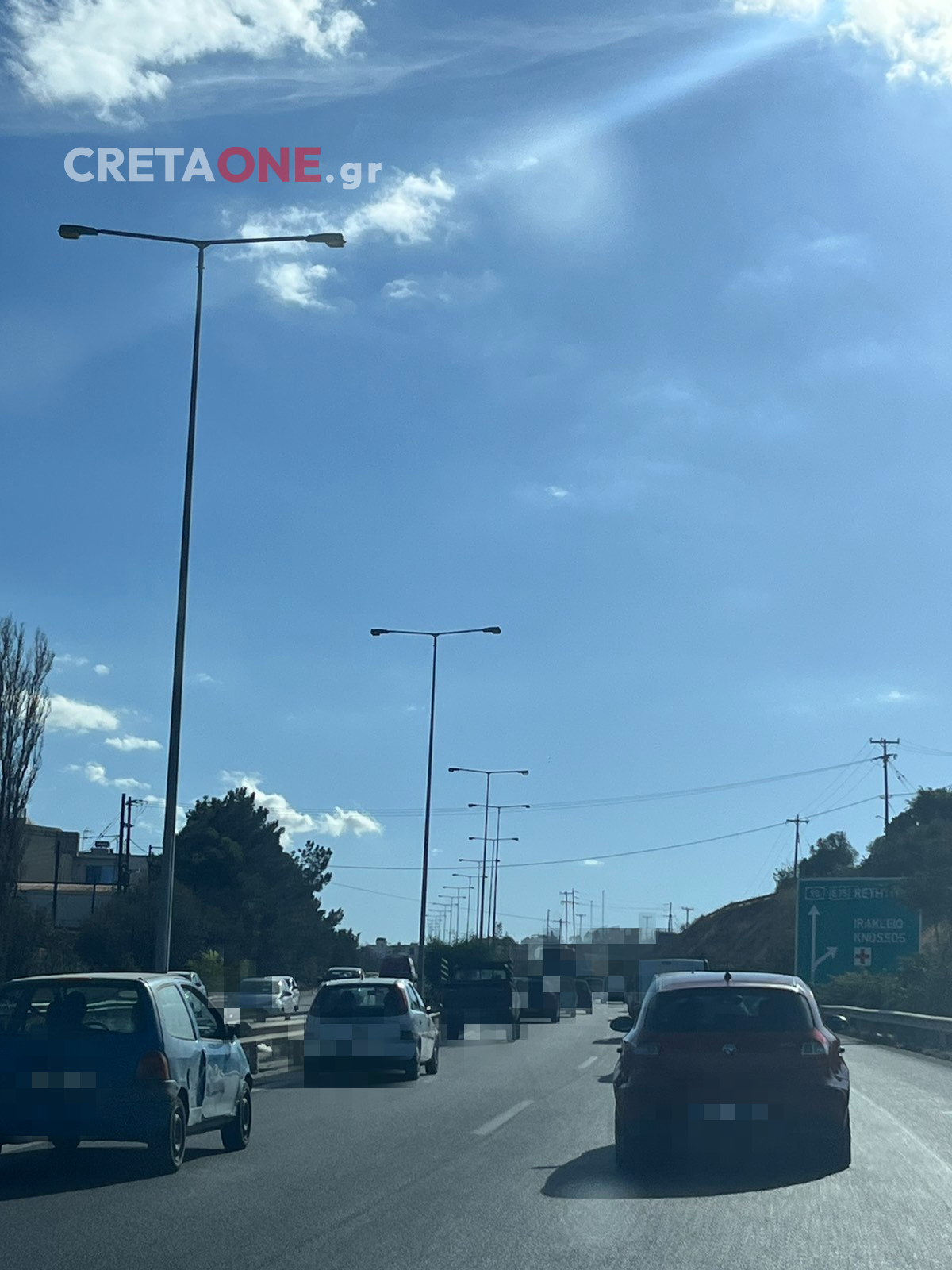 Η σχετική ταλαιπωρία για τους οδηγούς αλλά και το κυκλοφοριακό χάος αποτυπώνεται στις φωτογραφίες που έστειλε αναγνώστης στο Cretaone.gr.