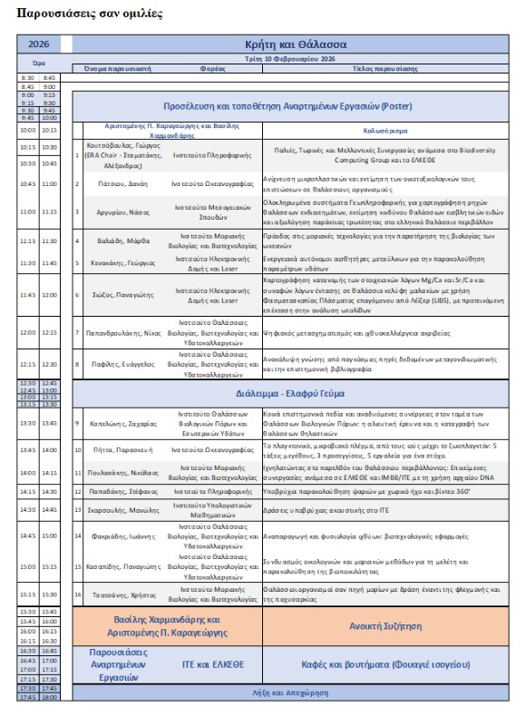 Η εναρκτήρια εκδήλωση της ημερίδας διερεύνησης συνεργασιών μεταξύ του Ελληνικού Κέντρου Θαλασσίων Ερευνών (ΕΛ.ΚΕ.Θ.Ε.) και του Ιδρύματος Τεχνολογίας και Έρευνας (Ι.Τ.Ε.) θα πραγματοποιηθεί σήμερα 9 Φεβρουαρίου 2026.