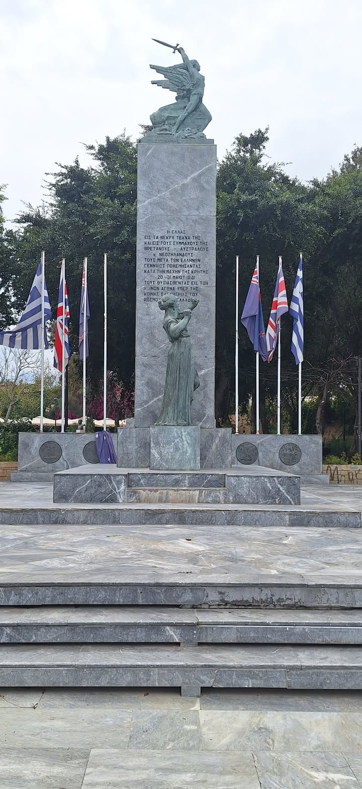 - Παρά τις φθορές στις σημαίες, το άγαλμα του Ελευθερίου Βενιζέλου φαίνεται έτοιμο για τις εκδηλώσεις.