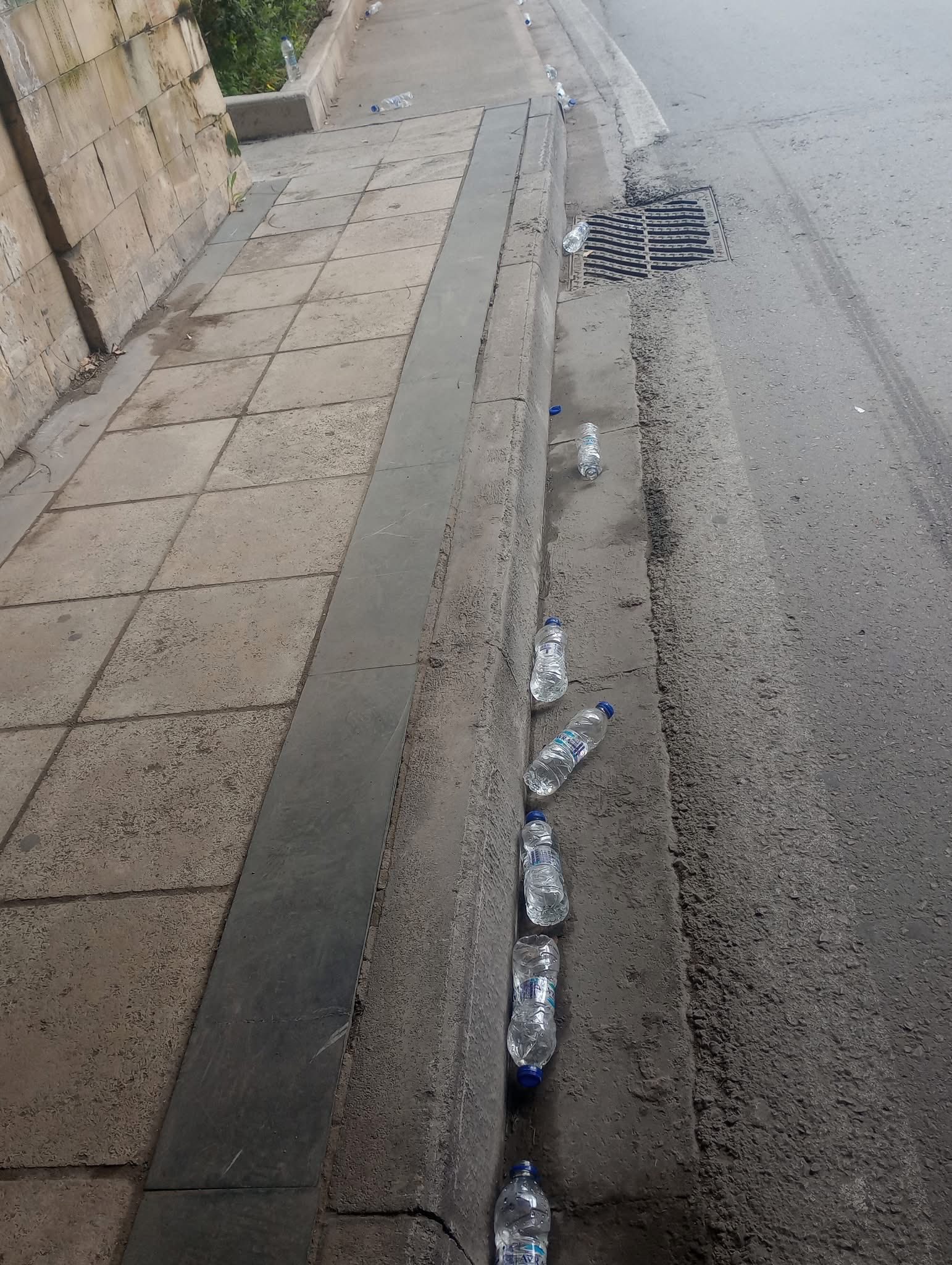 Η φωτογραφία δείχνει την κατάσταση που επικράτησε μετά τη διοργάνωση, με τα μπουκάλια να μένουν στον δρόμο, προκαλώντας αντιδράσεις για την έλλειψη άμεσης αποκατάστασης της καθαριότητας αλλά και για τη στάση των πολιτών απέναντι στον δημόσιο χώρο.