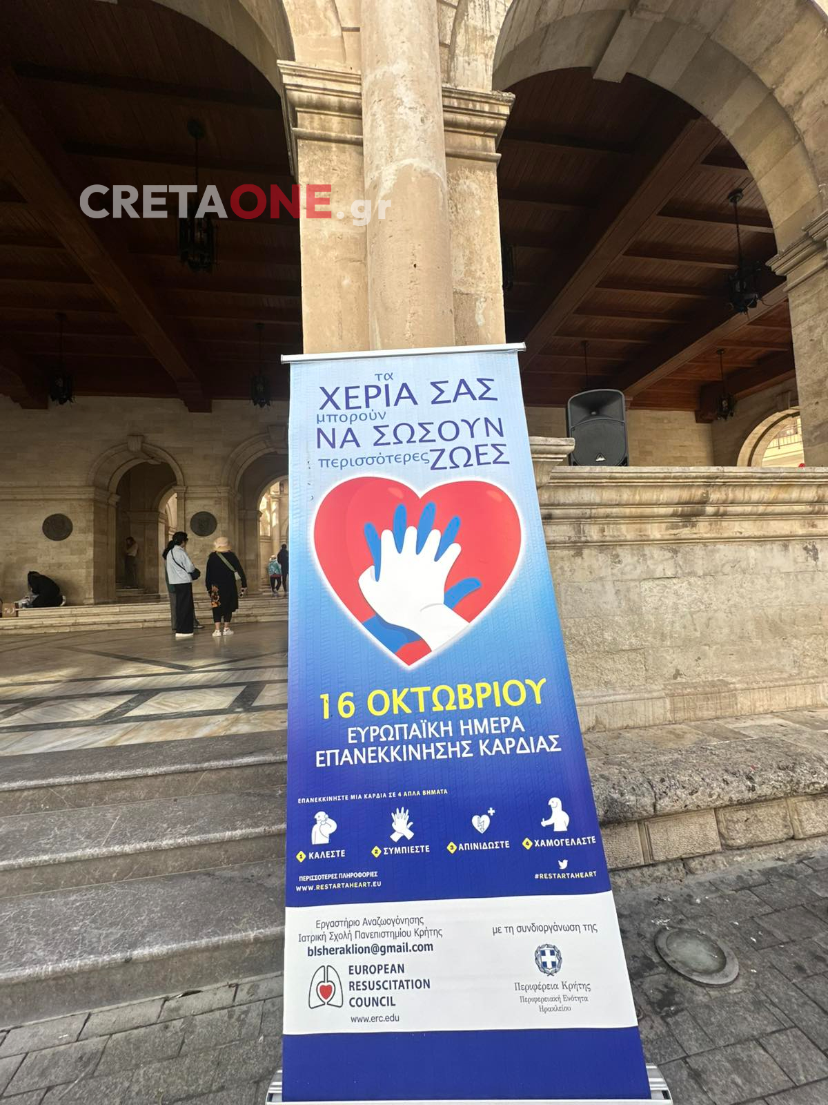 Το Εργαστήριο Αναζωογόνησης της Ιατρικής σχολής του Πανεπιστημίου Κρήτης βρέθηκε σήμερα Πέμπτη 16 Οκτωβρίου 2025 έξω απ’ το δημαρχείο της πόλης, στη Λότζια, προκειμένου να εκπαιδεύσουν τον κόσμο του Ηρακλείου στην ΚΑΡΠΑ.