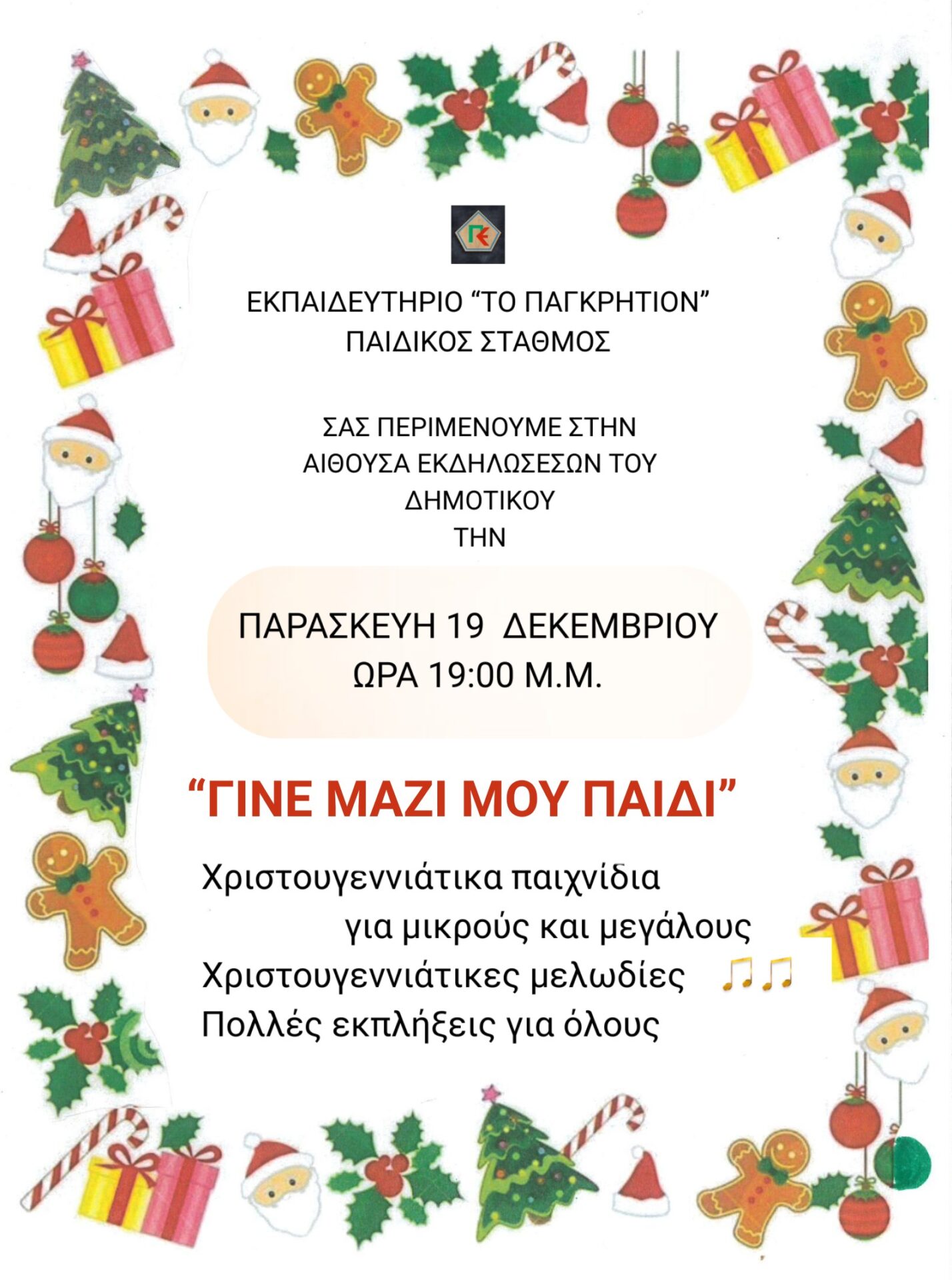 Το ιδιωτικό εκπαιδευτήριο «Παγκρήτιο» συμμετέχει στο Χριστουγεννιάτικο φιλανθρωπικό παζάρι, “Γιορτάζω, Αγαπώ, Προσφέρω” του Δήμου Ηρακλείου και της Περιφέρειας Κρήτης στη Λότζια.