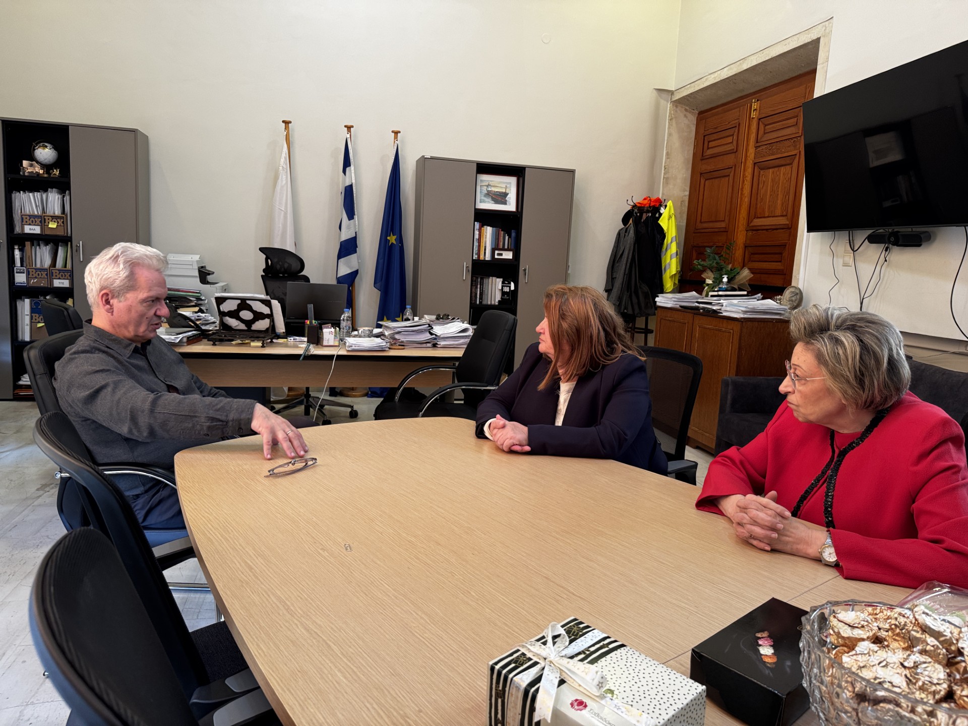Τη δικηγόρο του Δήμου Ηρακλείου Μαρία Κατίκα που συνταξιοδοτείται στις 31/12/2025 συνάντησε στη Λότζια ο Δήμαρχος Ηρακλείου Αλέξης Καλοκαιρινός, μαζί με την Γενική Γραμματέα του Δήμου Μαρία Σκραφνάκη, ευχαριστώντας την για την πολύ καλή συνεργασία και τη σημαντική προσφορά της στον Δήμο και τους ανθρώπους του.