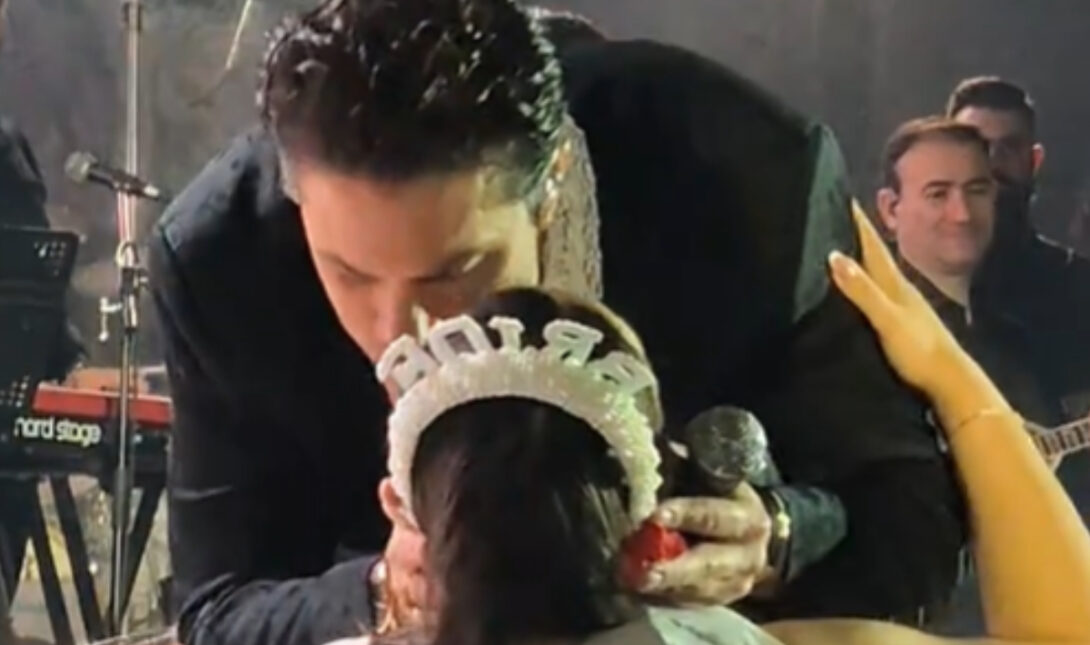 Σε βίντεο που δημοσιεύτηκε στο TikTok, ο Νίκος Οικονομόπουλος φαίνεται να την πλησιάζει, να τη φιλάει σταυρωτά, ενώ παράλληλα φρόντισε να της τοποθετήσει ξανά στο κεφάλι μια στέκα, που έγραψε «νύφη».