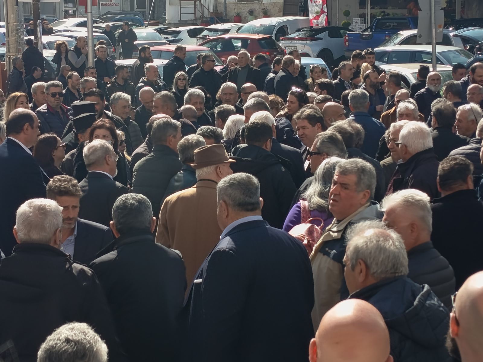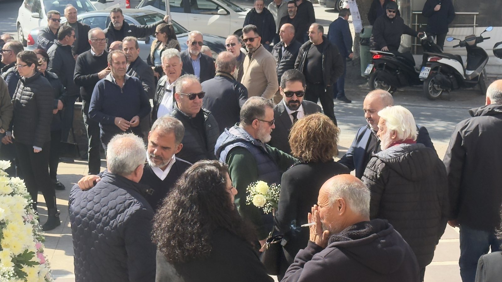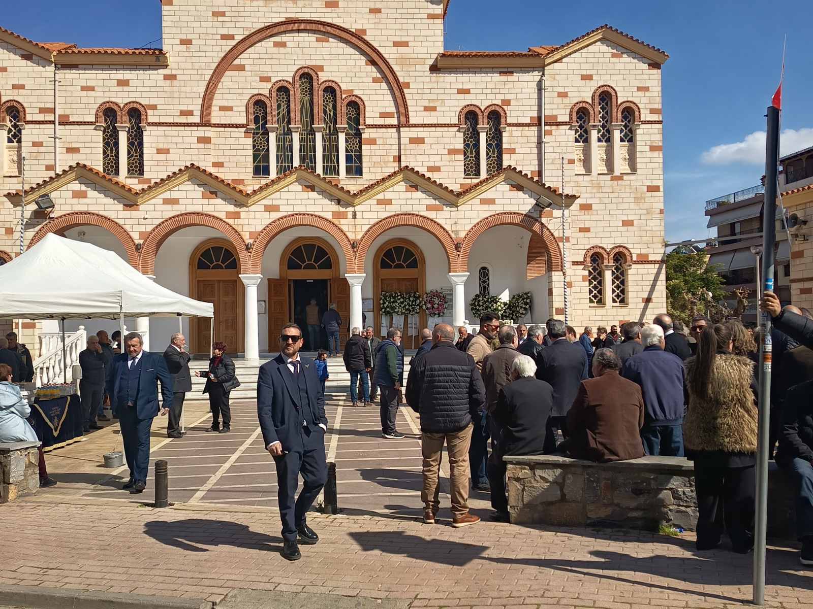 Στον χώρο της εκκλησίας βρίσκεται ήδη πλήθος κόσμου, ενώ έχουν αποσταλεί δεκάδες στεφάνια από εκπροσώπους της πολιτικής ζωής, της τοπικής αυτοδιοίκησης, της Ελληνικής Αστυνομίας, καθώς και από φορείς, συλλόγους και εκπροσώπους του επιχειρηματικού κόσμου της περιοχής, ως ένδειξη τιμής και σεβασμού προς τον εκλιπόντα και την οικογένειά του.