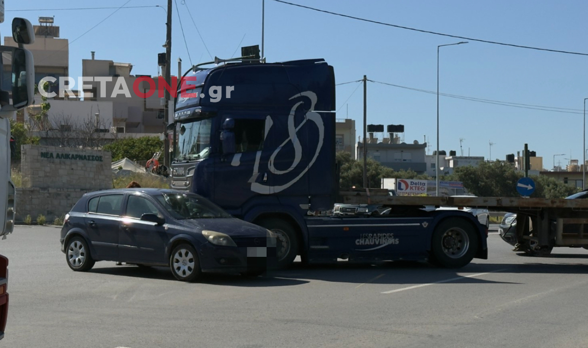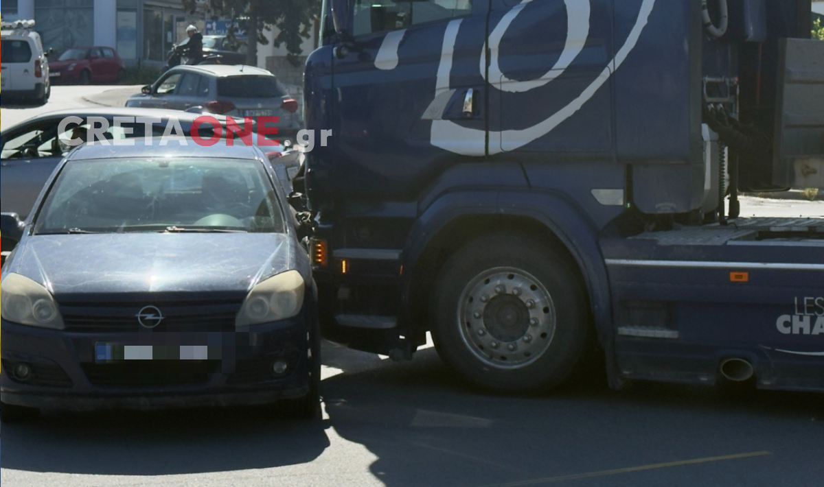 Τροχαίο ατύχημα σημειώθηκε στα φανάρια της Αλικαρνασσού στο Ηράκλειο, όταν αυτοκίνητο συγκρούστηκε με φορτηγό.