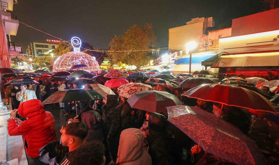 Κάτοικοι κάθε ηλικίας δεν πτοήθηκαν από τον άστατο καιρό και κατέκλυσαν το κέντρο του Ηρακλείου για να καλωσορίσουν τη νέα χρονιά.