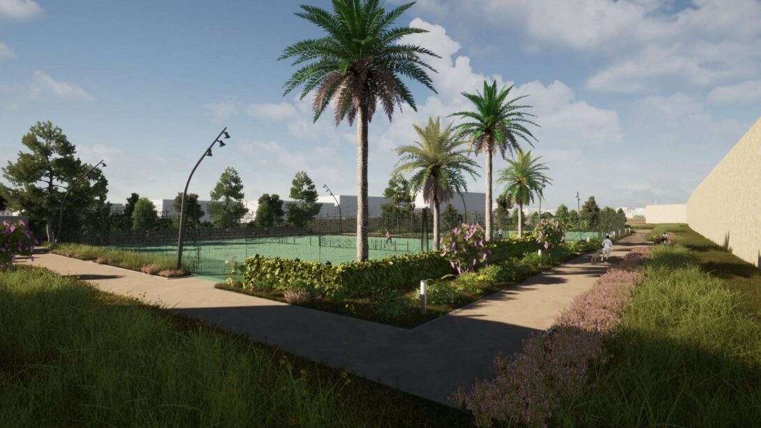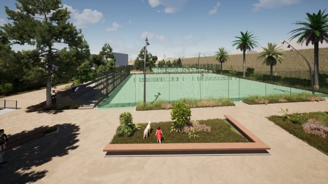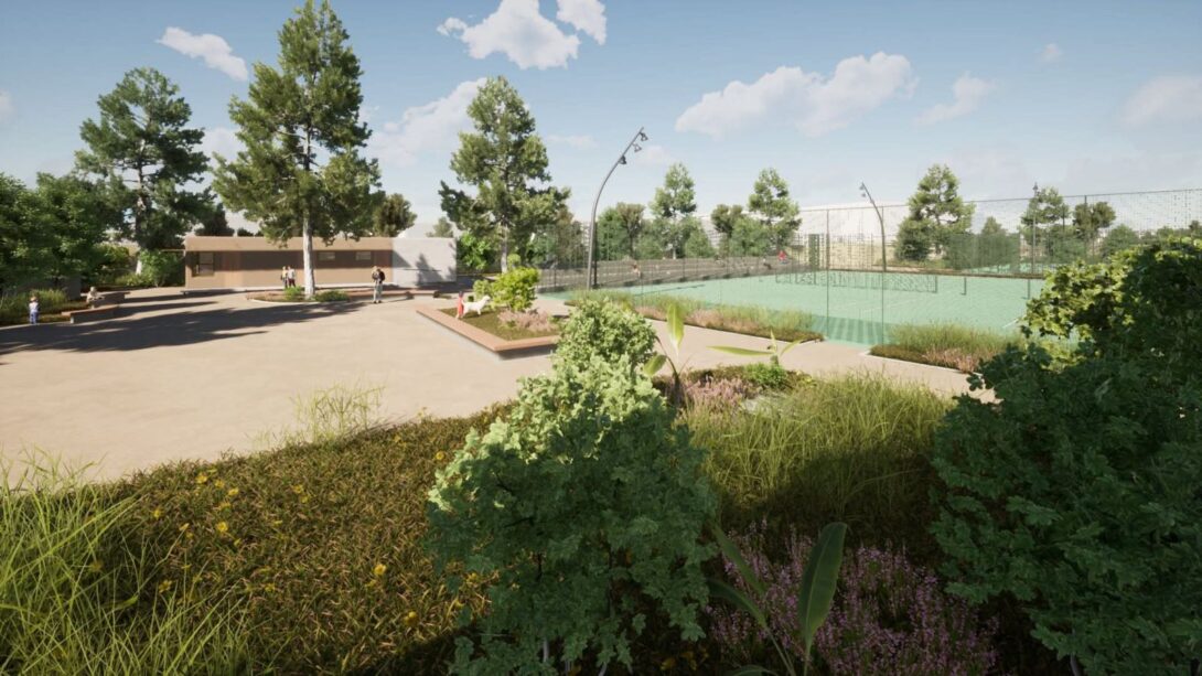 Ειδικότερα, σύμφωνα με τον προγραμματισμό θα κατασκευαστούν σε νέα θέση δύο διπλά γήπεδα συνολικού εμβαδού 1.273 μ², νέα πτυσσόμενη περίφραξη ελαφριάς κατασκευής και θα τοποθετηθεί λυόμενος οικίσκος αποδυτηρίων. Οι εργασίες περιλαμβάνουν επίσης εκσκαφές, καθαιρέσεις, κατασκευή νέων κρασπέδων από σκυρόδεμα, διαμόρφωση παρτεριών και δαπέδωση με εμφανή αδρανή υλικά λατομείου ίδιου τύπου με αυτά που έχουν χρησιμοποιηθεί στις διαδρομές του Ισόπεδου Τμήματος. Προβλέπεται επίσης κατασκευή καθιστικών από σκυρόδεμα με επένδυση από λωρίδες ξυλείας, τοποθέτηση φωτιστικών σωμάτων LED, νέες φυτεύσεις με σύστημα άρδευσης και τοποθέτηση μικρών ξύλινων κάδων απορριμμάτων στον περιβάλλοντα χώρο.