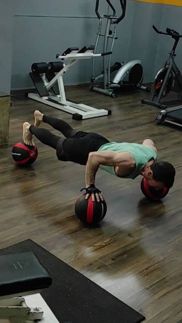 - Ο Βαθμός Δυσκολίας: Η Κατακλινής Θέση (Decline) αυξάνει το βάρος στους ώμους, ενώ η εκτέλεση της άσκησης πάνω στις Ιατρικές Μπάλες απαιτεί συνεχή ενεργοποίηση του κορμού (core) για τη διατήρηση της ισορροπίας.