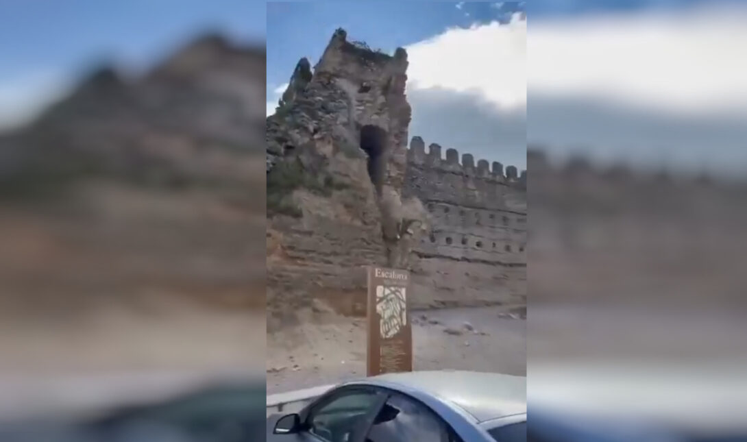 Περαστικός κατέγραψε τη στιγμή που εμβληματικός πύργος του μεσαιωνικού κάστρου Εσκαλόνα καταρρέει, προκαλώντας τεράστια σύννεφα σκόνης.