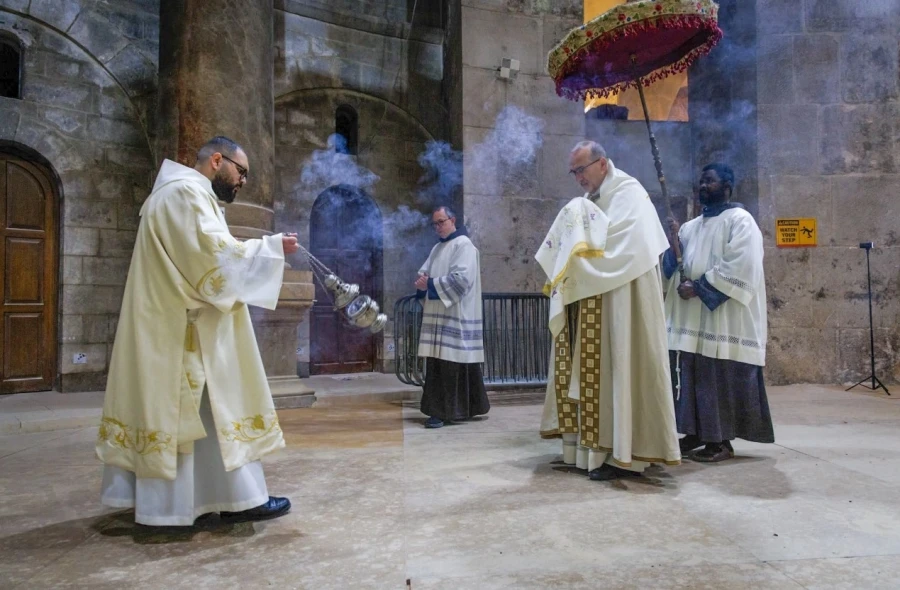 O Λατίνος Πατριάρχης Ιεροσολύμων, Πιερμπατίστα Πιτσαμπάλα τέλεσε τη θεία Λειτουργία στον Πανάγιο Τάφο στην Ιερουσαλήμ.
