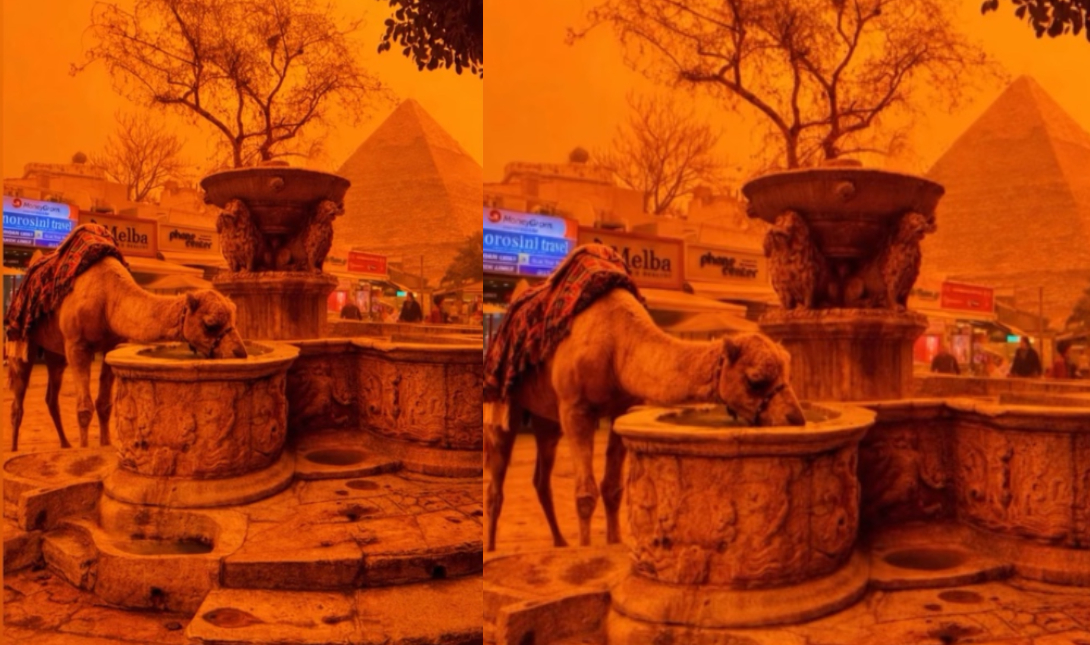 Το ασυνήθιστο σκηνικό εμπνέεται από τη χθεσινή αφρικανική σκόνη που σκέπασε την πόλη, δημιουργώντας ένα «εξωτικό» κλίμα στην καρδιά του Ηρακλείου.