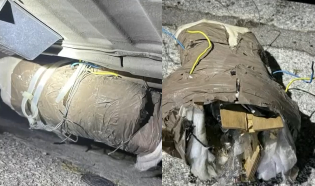 Όταν ο 45χρονος αλλοδαπός σταμάτησε το αυτοκίνητό του και το έλεγξε, είδε τα τμήματα του μηχανισμού να προεξέχουν από τη σακούλα και ενημέρωσε τις αρχές.