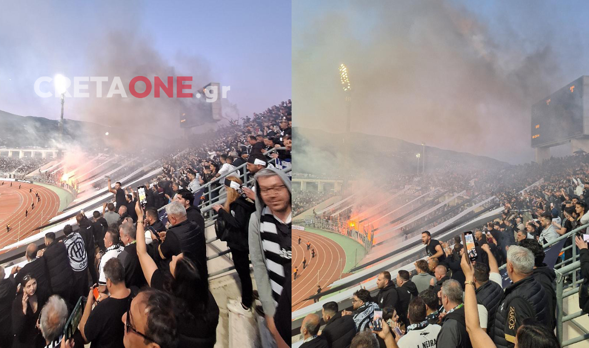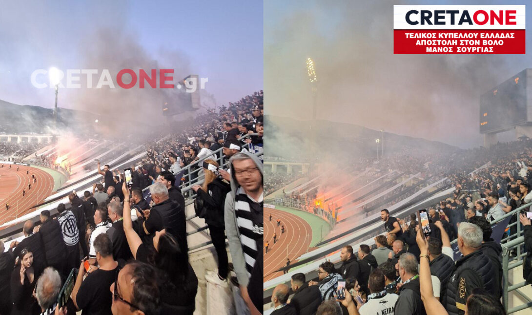 Σε εντυπωσιακό σκηνικό έχει μετατραπεί το Πανθεσσαλικό Στάδιο, με τους φιλάθλους να δημιουργούν ατμόσφαιρα που θυμίζει… «καμίνι» λίγο πριν την έναρξη του μεγάλου τελικού.