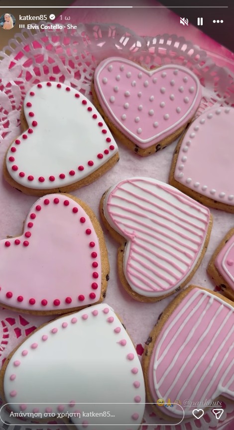 Στο βίντεο που δημοσίευσε, κυριαρχούν οι ροζ αποχρώσεις, με εντυπωσιακές ανθοδέσμες, μπαλόνια και γλυκά, όπως μπισκότα με ροζ ζαχαρόπαστα, να έχουν γεμίσει το δωμάτιο. Η ίδια συνόδευσε το στιγμιότυπο με το τραγούδι She του Elvis Costello.