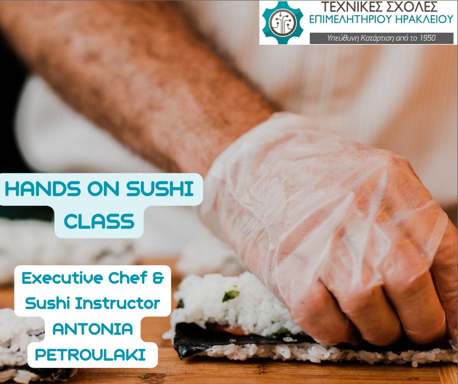 Εισηγήτρια: Η Αντωνία Πετρουλάκη είναι απόφοιτη της σχολής μαγειρικής «Kappa Studies» στο Ηράκλειο, με εξειδίκευση στη γαστρονομία, τη ζαχαροπλαστική, την οινολογία και το sushi, όπου έχει παρακολουθήσει εξειδικευμένα σεμινάρια. Έχει εργαστεί ως Chef και Head Chef σε κορυφαίες ξενοδοχειακές μονάδες της Κρήτης, όπως τα Nana Princess, Lyttos Mare, Nanagoldenbeach και το Elios Hill, όπου ανέπτυξε τις sushi δημιουργίες της, αλλά και σε εστιατόρια υψηλής γαστρονομίας. Σήμερα είναι Chef στον Όμιλο Hotels στο Ηράκλειο. Παράλληλα, δραστηριοποιείται ως Εκπαιδεύτρια Γαστρονομίας, συνεργαζόμενη με ΙΕΚ και επιμελητήρια, ενώ εισηγείται σεμινάρια και workshops με έμφαση στη μεσογειακή κουζίνα και τις σύγχρονες sushi τεχνικές. Με πάθος για τη μετάδοση γνώσεων και πρακτική προσέγγιση στη διδασκαλία, εμπνέει νέους επαγγελματίες και καθοδηγεί επιχειρήσεις εστίασης μέσα από consulting και mentoring.