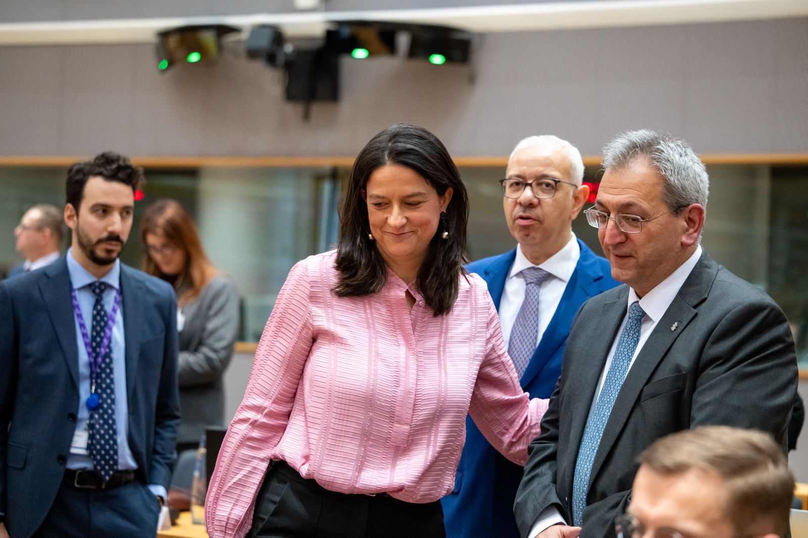 Στο περιθώριο της Συνεδρίασης, η κα Κεραμέως πραγματοποίησε διμερείς συναντήσεις με την Εκτελεστική Αντιπρόεδρο της Ευρωπαϊκής Επιτροπής, αρμόδια για ζητήματα Κοινωνικών Δικαιωμάτων και Δεξιοτήτων, Ποιοτικών Θέσεων Εργασίας και Ετοιμότητας, Roxana Mînzatu, με τον επικεφαλής της Γενικής Διεύθυνσης Απασχόλησης της Ευρωπαϊκής Επιτροπής, Mario Nava, με τον νεοεκλεγέντα Πρόεδρο της Ευρωπαϊκής Οικονομικής και Κοινωνικής Επιτροπής, Séamus Boland, με τον Κύπριο ομόλογό της Μαρίνο Μουσιούττα καθώς και με τον Γάλλο ομόλογό της Jean-Pierre Farandou.