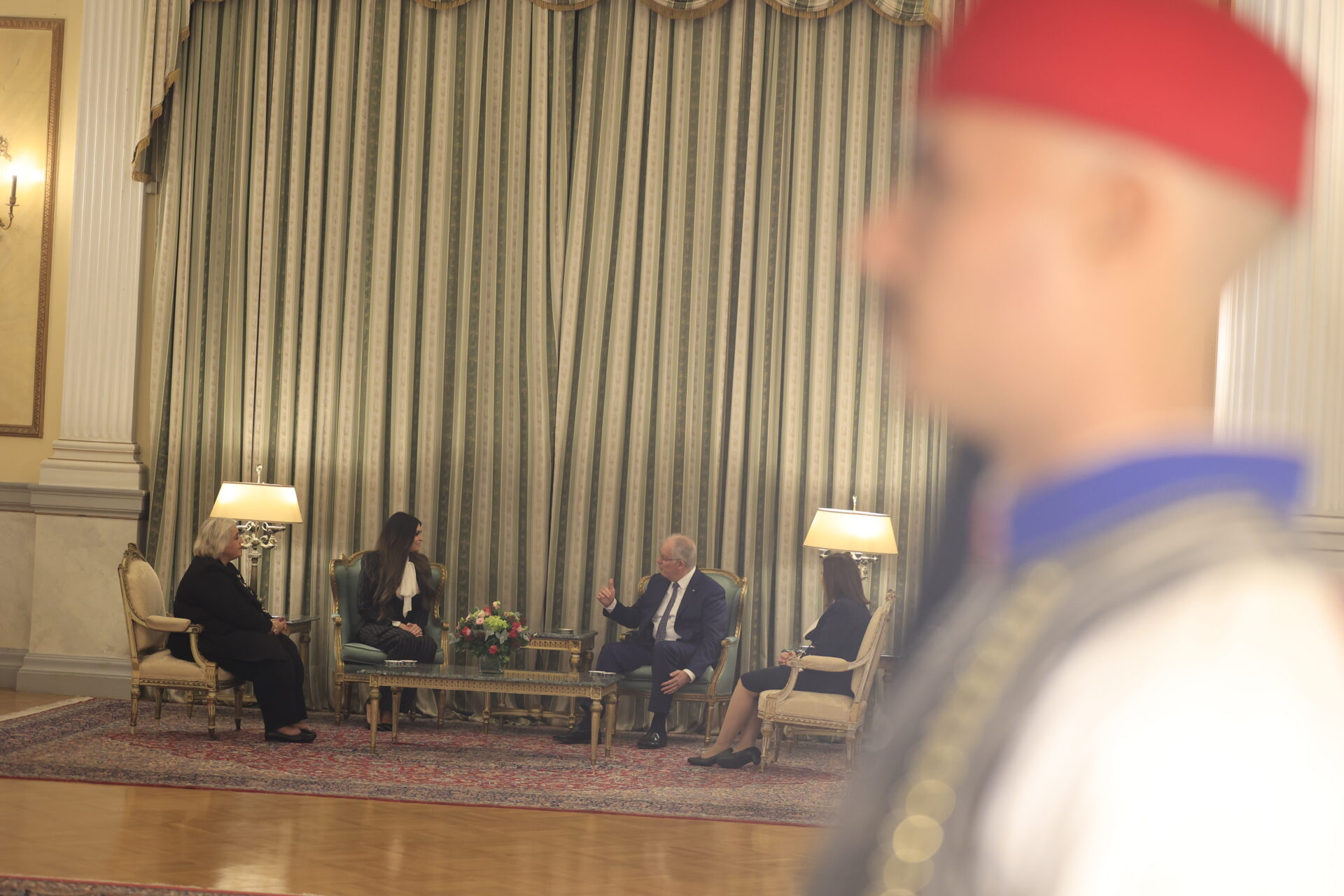 Ο Πρόεδρος της Δημοκρατίας Κωνσταντίνος Αν. Τασούλας, δέχθηκε διαδοχικά τις νέες Πρέσβεις του Βασιλείου της Νορβηγίας Harriet E. Berg, του Καναδά Sonya Thissen και των Ηνωμένων Πολιτειών Αμερικής Kimberly Guilfoyle, οι οποίες επέδωσαν τα διαπιστευτήριά τους, Τρίτη 4 Νοεμβρίου 2025. (ΓΙΩΡΓΟΣ ΚΟΝΤΑΡΙΝΗΣ/EUROKINISSI)