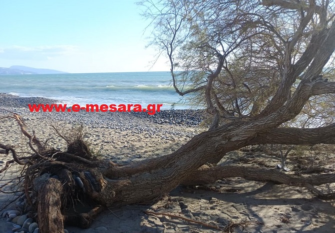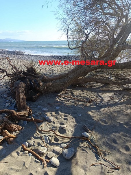 Oι ρίζες έμειναν εκτεθειμένες ενώ κορμοί και κλαδιά βρέθηκαν διασκορπισμένα στην άμμο
