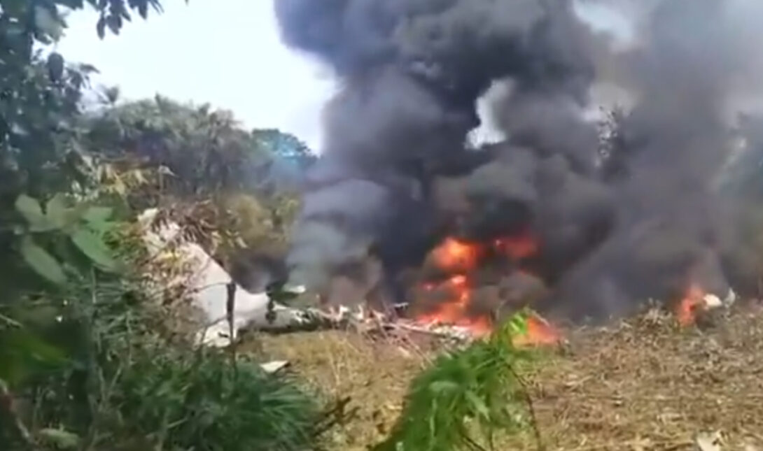 Video footage shows the burning wreckage of a Colombian Air Force C-130 Hercules after crashing earlier during take off from Puerto Leguízamo, with authorities reporting that the death toll includes at least 90 officers with the Fuerza Pública de Colombia. pic.twitter.com/eFpf3PzPj9