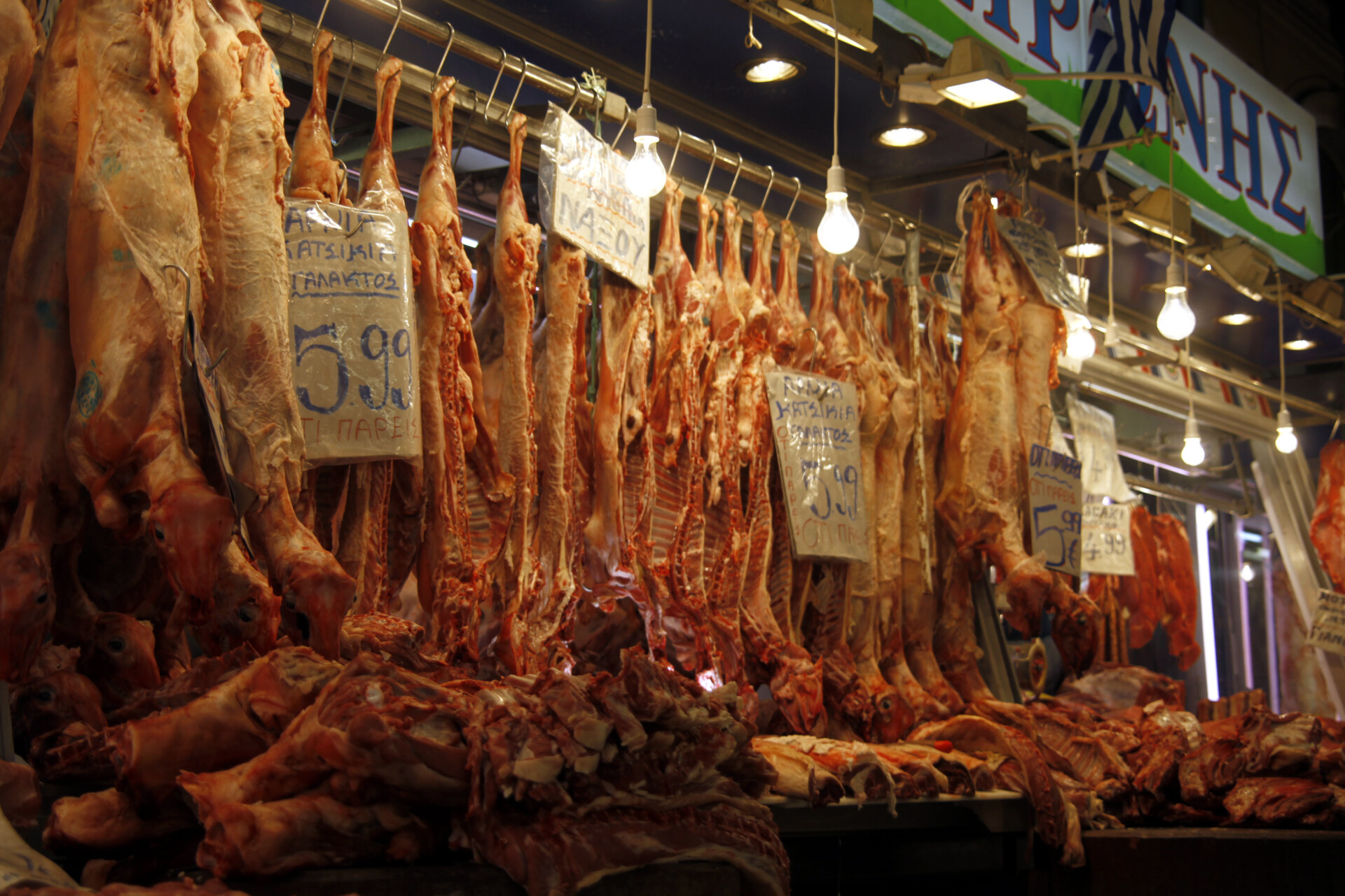«Οι μικρότεροι παίρνουν και άλλα προϊόντα, όχι μόνο αρνί και κατσίκι. Υπάρχει πλέον μεγάλη ποικιλία στα κρεοπωλεία», σημειώνει.