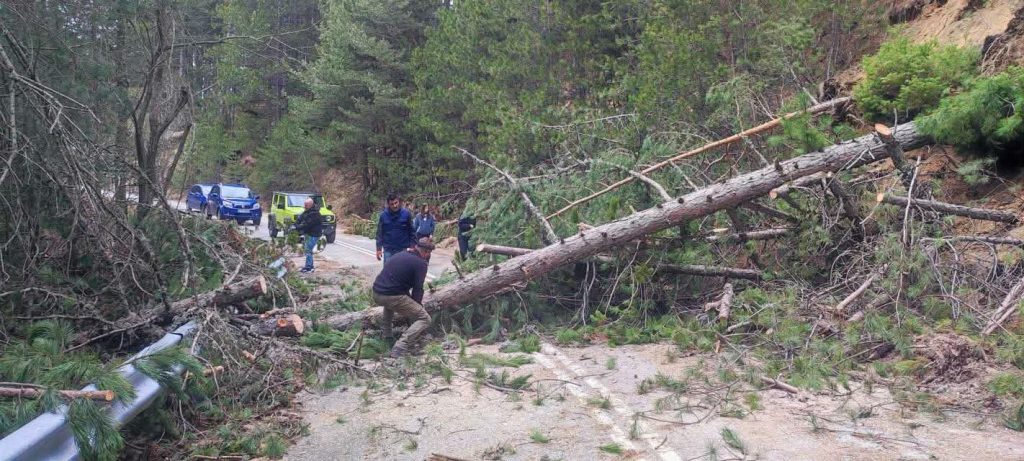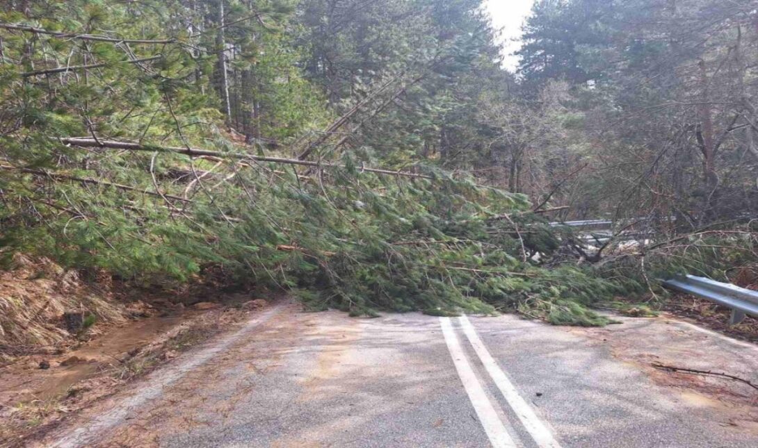 Πτώση δέντρων σημειώθηκε στον δρόμο λίγο πριν τη θέση «Λιβάδια», στην περιοχή του Καταφυγίου Βελβεντού, προκαλώντας προσωρινά προβλήματα στην κυκλοφορία των οχημάτων.
