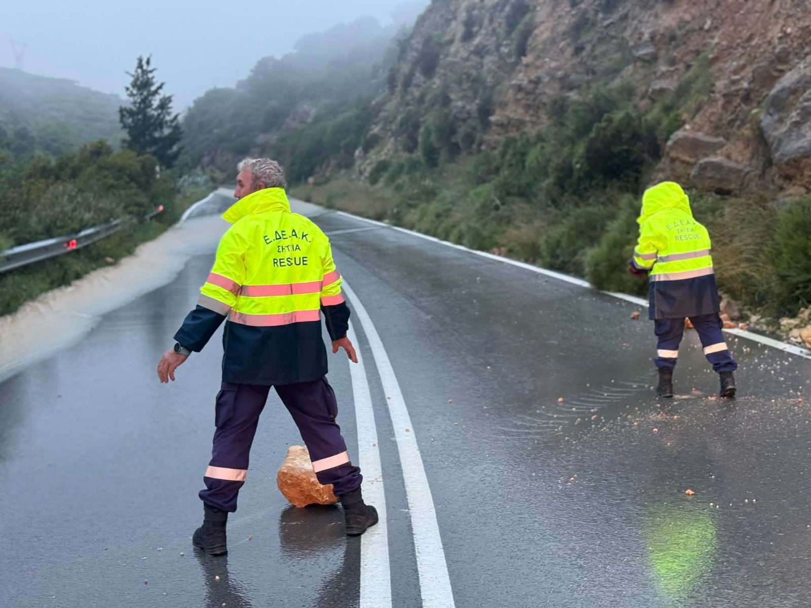 - Η ΕΔΕΑΚ κινητοποιήθηκε άμεσα για την απομάκρυνση μεγάλων πέτρινων όγκων από το οδόστρωμα στη Σητεία.
