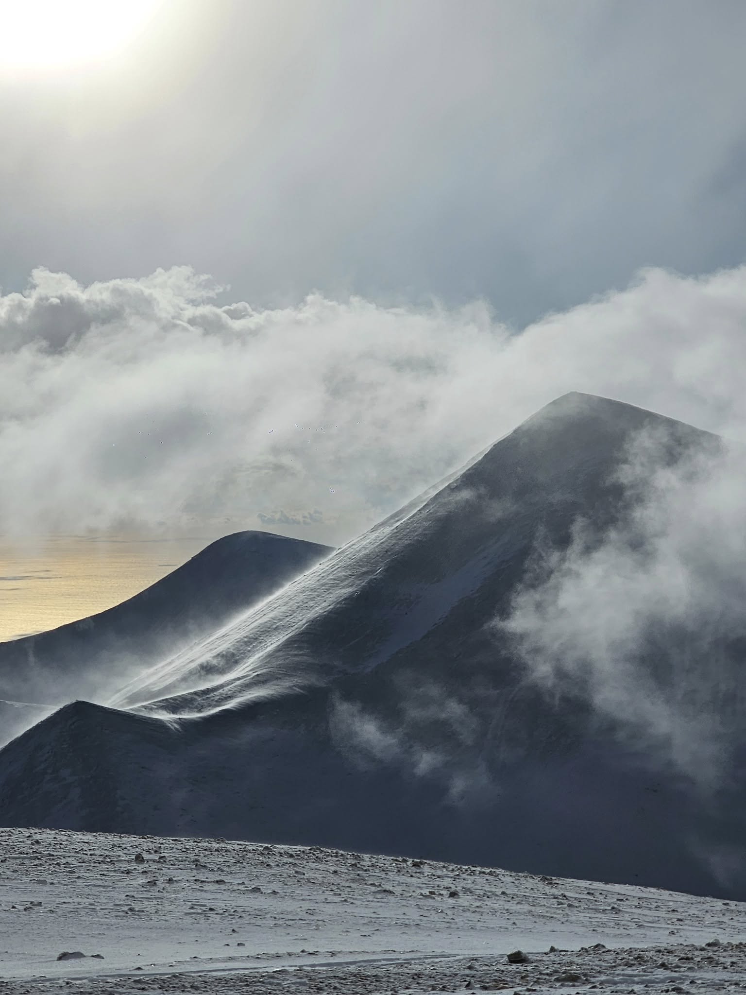 Κατά το πλείστον η διαδρομή ήταν στο σύννεφο μέσα, κ συχνά με χιονόπτωση, αλλά όταν Άνοιγε παράθυρο ο καιρός, οι εικόνες σε αποζημίωναν για τις παγωμένες ριπές του δυτικού ανέμου».