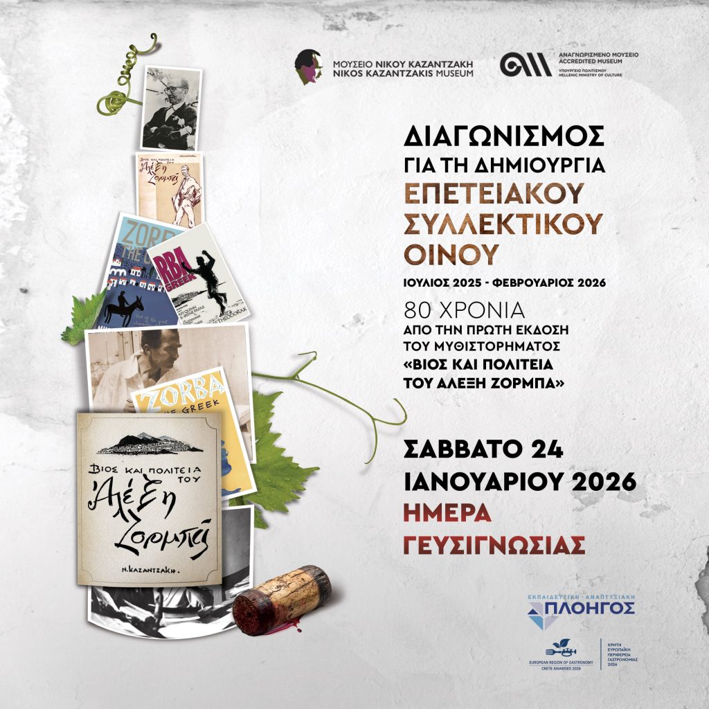 - Τα 14 οινοποιεία της Κρήτης καλούνται να δημιουργήσουν συλλεκτικό κρασί που αντανακλά την προσωπικότητα του Αλέξη Ζορμπά.