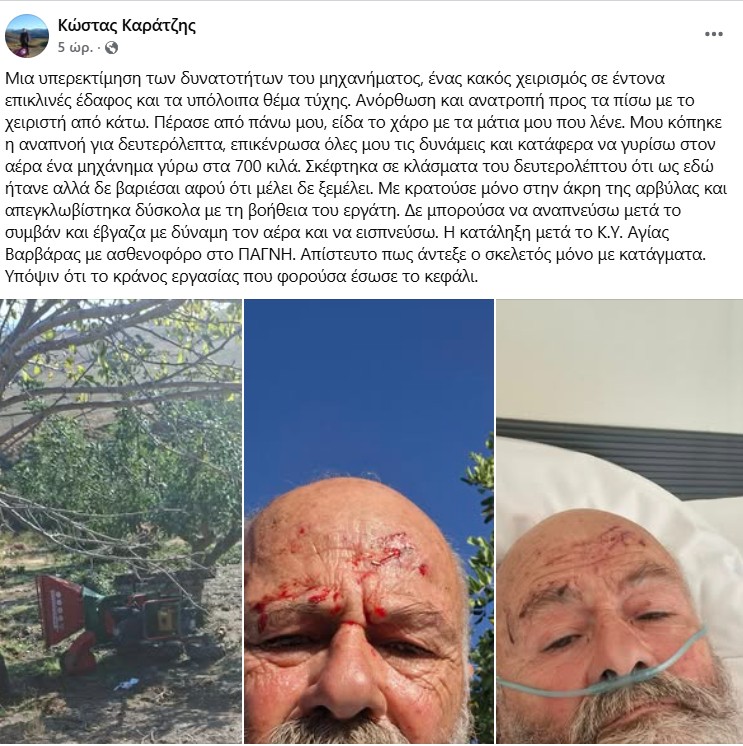 • Ο ίδιος περιέγραψε το περιστατικό στο Facebook, επισημαίνοντας την υπερεκτίμηση του μηχανήματος και τον κακό χειρισμό.