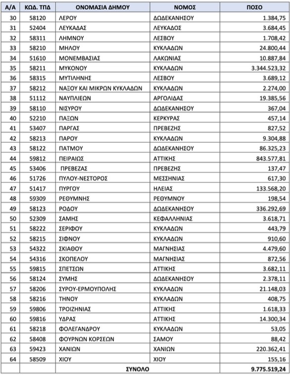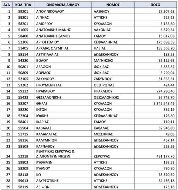 Τα ποσά που θα λάβουν οι υπόλοιποι δήμοι στην Κρήτη, είναι τα εξής