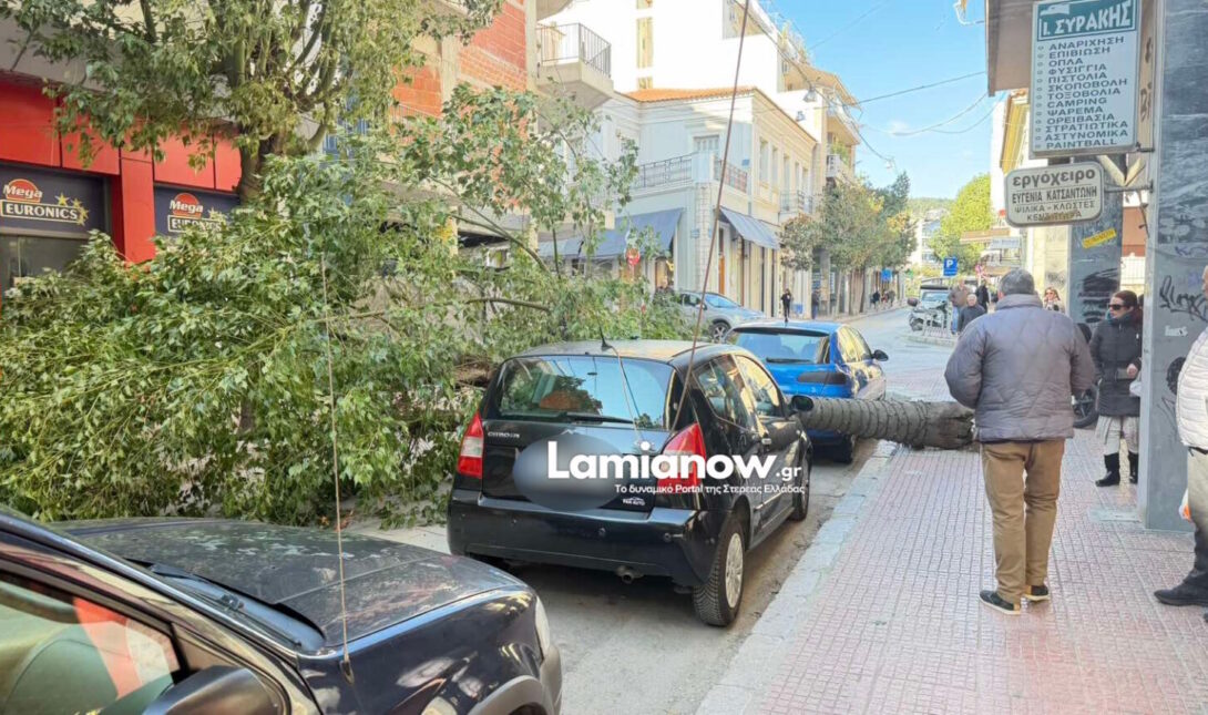 • Ένα δέντρο έπεσε στο κέντρο της Λαμίας προκαλώντας υλικές ζημιές σε σταθμευμένα αυτοκίνητα.