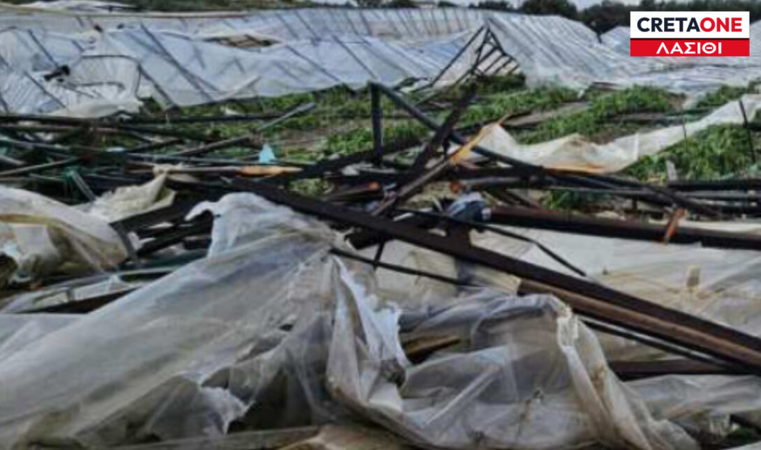 Την ίδια ώρα, σύμφωνα με το radiolasithi, οι θυελλώδεις ριπές προκάλεσαν την πτώση πέργκολας σε αυλή κατοικίας. Από τη δύναμη του ανέμου καλώδια ηλεκτροδότησης έπεσαν πάνω σε θερμοκήπιο, με αποτέλεσμα να σημειωθεί διακοπή ρεύματος στην περιοχή για αρκετή ώρα. Την ένταση των φαινομένων δείχνει και η πτώση ενός ανεμόμυλου ο οποίος κατέρρευσε από τη βάση του.