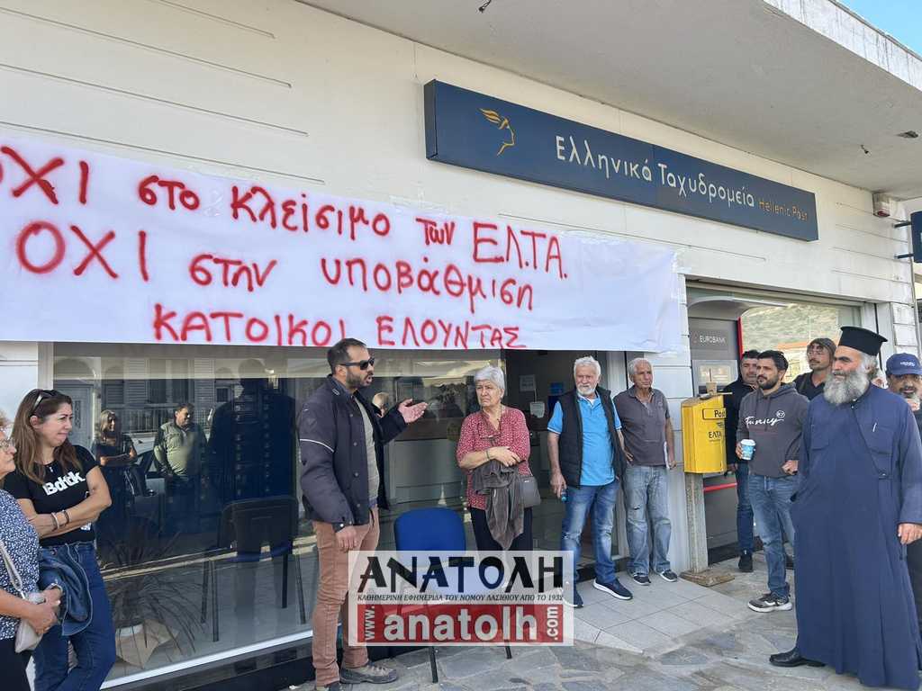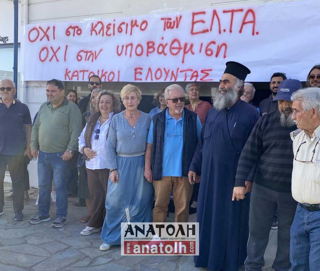 Αυτή την ώρα πραγματοποιείται συγκέντρωση διαμαρτυρίας έξω από το κατάστημα των ΕΛ.ΤΑ. με τους κατοίκους της Ελούντας να δηλώνουν αποφασισμένοι να υπερασπιστούν το δικαίωμά τους στην πρόσβαση σε βασικές υπηρεσίες που αποτελούν αναπόσπαστο κομμάτι της καθημερινής ζωής.