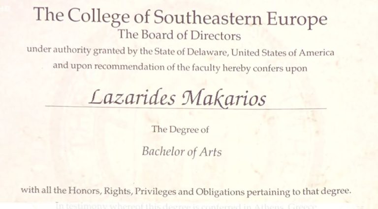 Απαντήσεις για το θέμα του πτυχίου του και για τη σφοδρή κριτική που δέχεται, έδωσε ο υφυπουργός Αγροτικής Ανάπτυξης και Τροφίμων. Ο Μακάριος Λαζαρίδης έστρεψε τα βέλη του προς τους επικριτές του. Επέδειξε μάλιστα το πτυχίο του, από το κολέγιο Southeastern Europe, ένα από τα δύο μεγαλύτερα τότε στην Ελλάδα, το οποίο επέλεξε το 1987 ως «συνειδητή επιλογή» για τις σπουδές του.