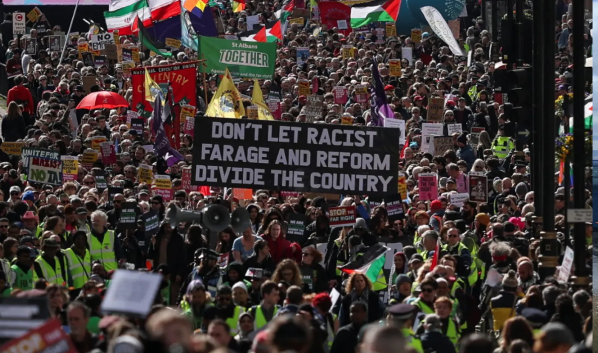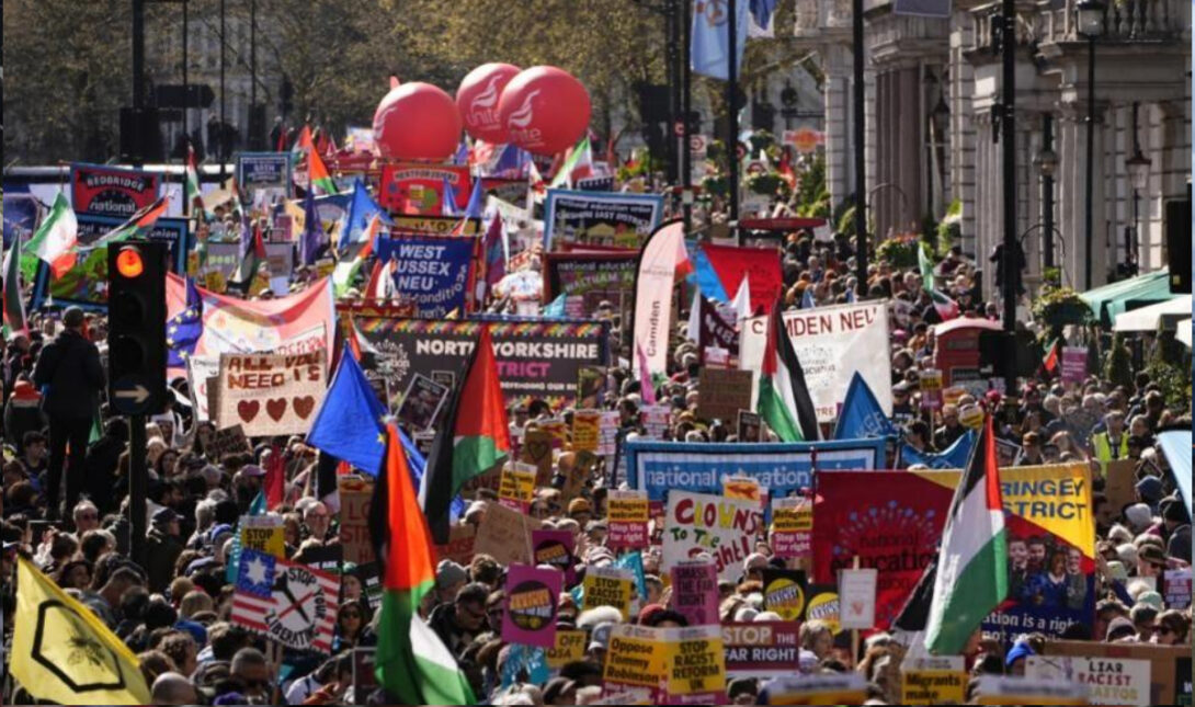 - Η κύρια πορεία της Together Alliance συνδέθηκε με τη «Together for Palestine», ενώ ακούγονταν συνθήματα υπέρ των προσφύγων.