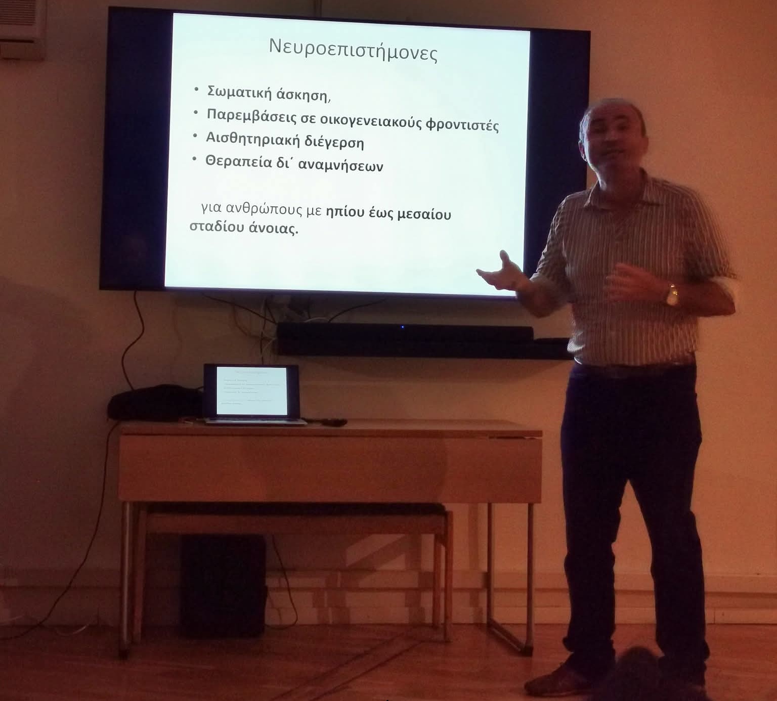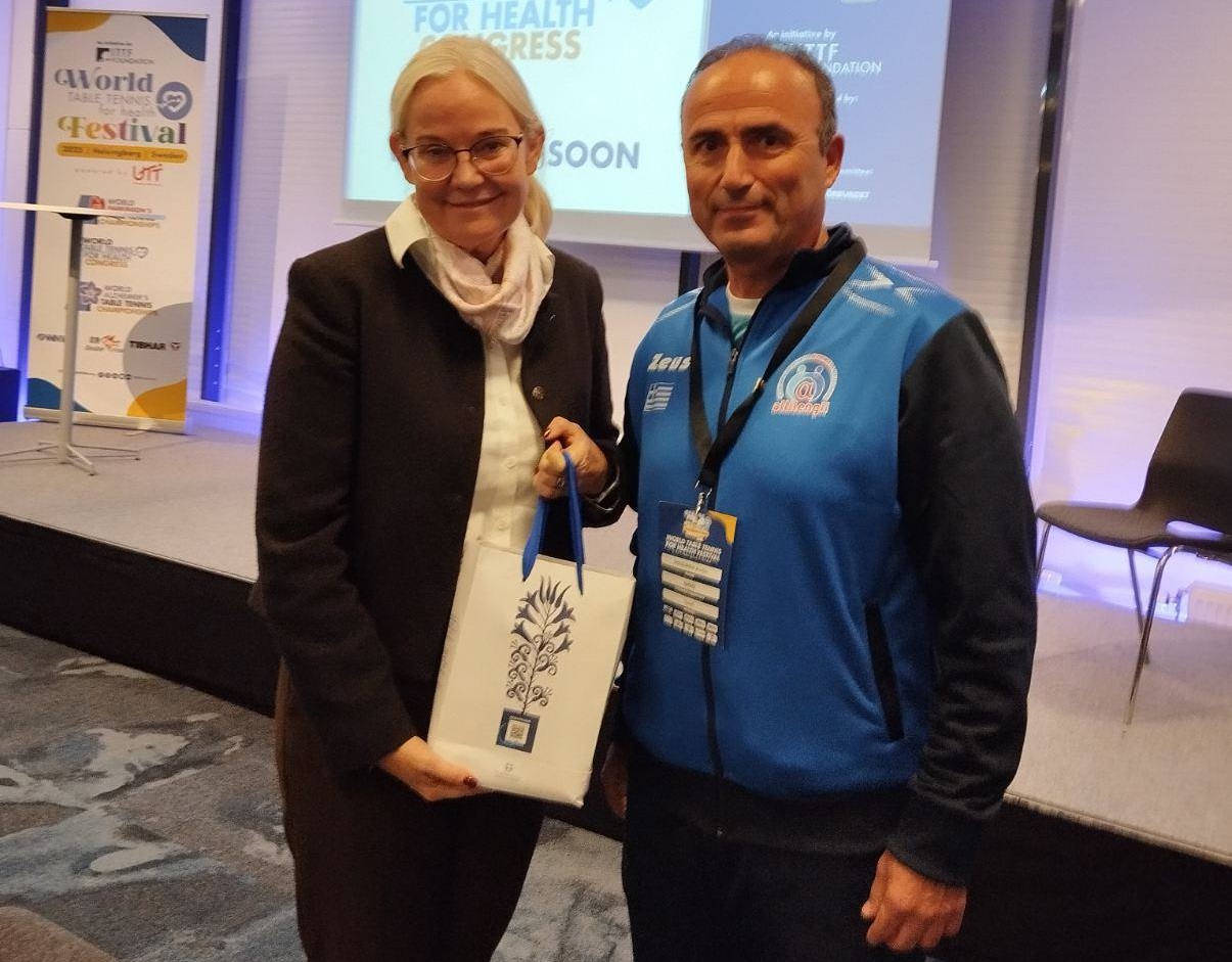 Στο πλαίσιο των αγώνων ο κ. Ποτουρίδης παρουσίασε στην Ελληνική κοινότητα του Χέλσιμποργκ την εργασία του σχετικά με τη νόσο Αλτσχάιμερ και πως βοηθάει η επιτραπέζια αντισφαίριση στην πρόληψη και εξέλιξη της νόσου στους ασθενείς με ήπια γνωστική διαταραχή.