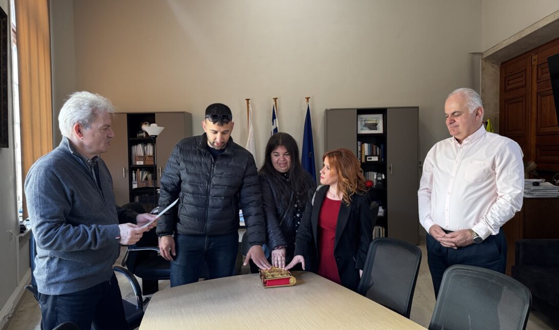 Πραγματοποιήθηκε από τον Δήμαρχο Ηρακλείου Αλέξη Καλοκαιρινό, παρουσία του Αντιδημάρχου Διοίκησης & Τουρισμού Γιώργου Αγριμανάκη, η ορκωμοσία τριών νέων μόνιμων Δημοτικών Υπαλλήλων το πρωί της Δευτέρας 27/4 στη Λότζια.