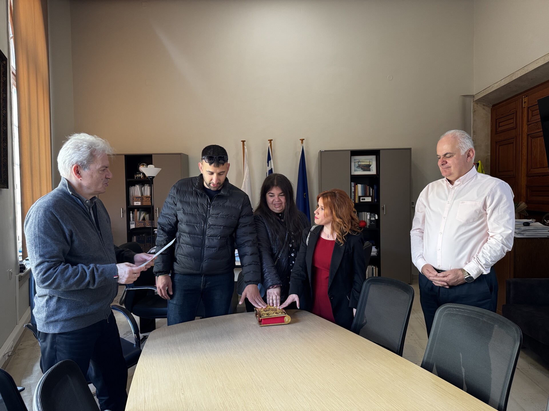 - Η ορκωμοσία των τριών νέων μόνιμων υπαλλήλων πραγματοποιήθηκε στη Λότζια από τον Δήμαρχο Ηρακλείου, Αλέξη Καλοκαιρινό.
