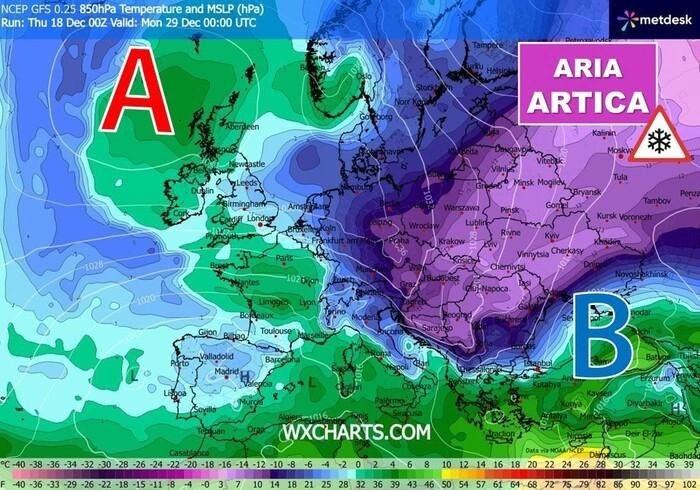 Σύμφωνα με αναλύσεις Ιταλών μετεωρολόγων, στο επίκεντρο βρίσκεται η δημιουργία ενός εκτεταμένου ψυχρού αποθέματος μεταξύ Σκανδιναβίας και Ρωσίας, το οποίο θα μπορούσε να επηρεάσει μεγάλο μέρος της ηπείρου.