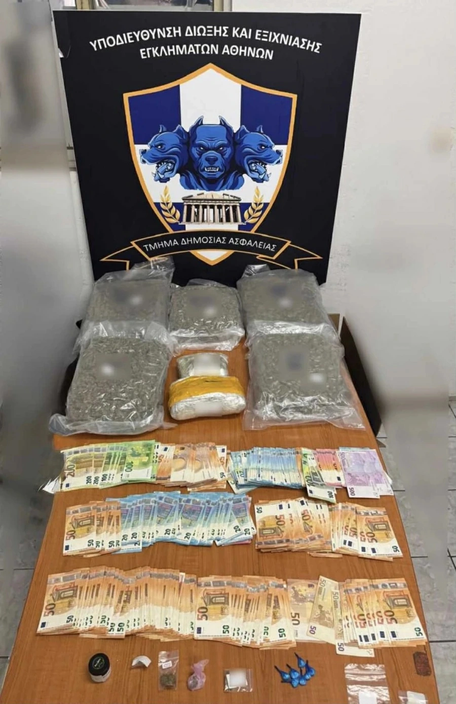 • Κατασχέθηκαν έξι κιλά κάνναβης, μικρή ποσότητα κοκαΐνης και περίπου 25.000 ευρώ.