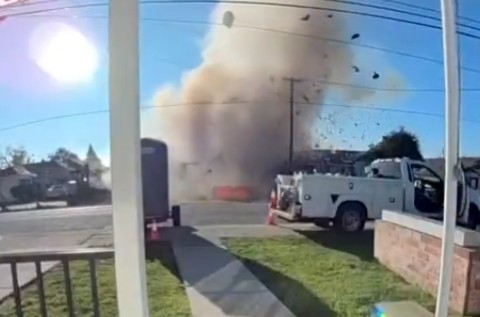 Το βίντεο από την κάμερα ασφαλείας ενός γείτονα κατέγραψε οχήματα κατασκευής μπροστά από τη διεύθυνση, καθώς μια μεγάλη έκρηξη κατέστρεψε μεγάλο μέρος της κύριας δομής. Η γειτόνισσα είπε στο CBS News Bay Area ότι ολόκληρο το σπίτι της κλονίστηκε από την έκρηξη.