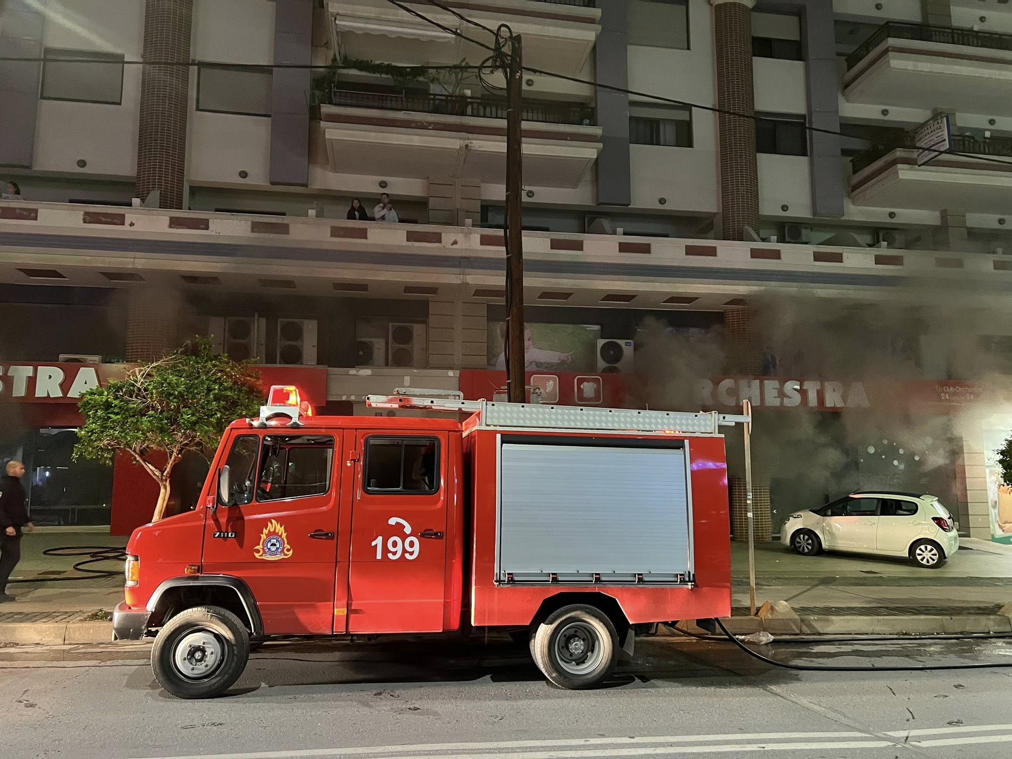 Η φωτιά εκδηλώθηκε στο υπόγειο, όπου βρίσκονται οι αποθήκες, και πολύ γρήγορα το σύνολο του χώρου γέμισε με πυκνούς, μαύρους καπνούς. Άμεσος ήταν ο κίνδυνος και για τους ενοίκους της πολυκατοικίας ακριβώς από πάνω, όμως χάρη στην έγκαιρη κινητοποίηση της Πυροσβεστικής κανείς δεν κινδύνευσε.