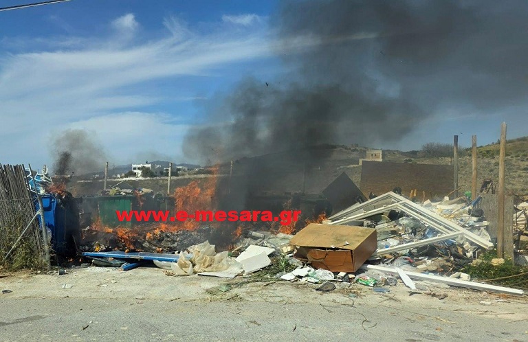 Φωτιά σημειώθηκε σε συσσωρευμένα σκουπίδια στην είσοδο του Καλαμακίου στον Δήμο Φαιστού, σύμφωνα με καταγγελίες κατοίκων της περιοχής.